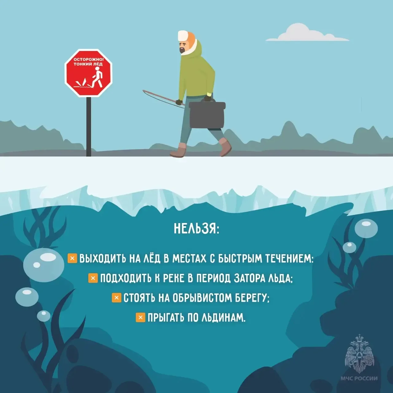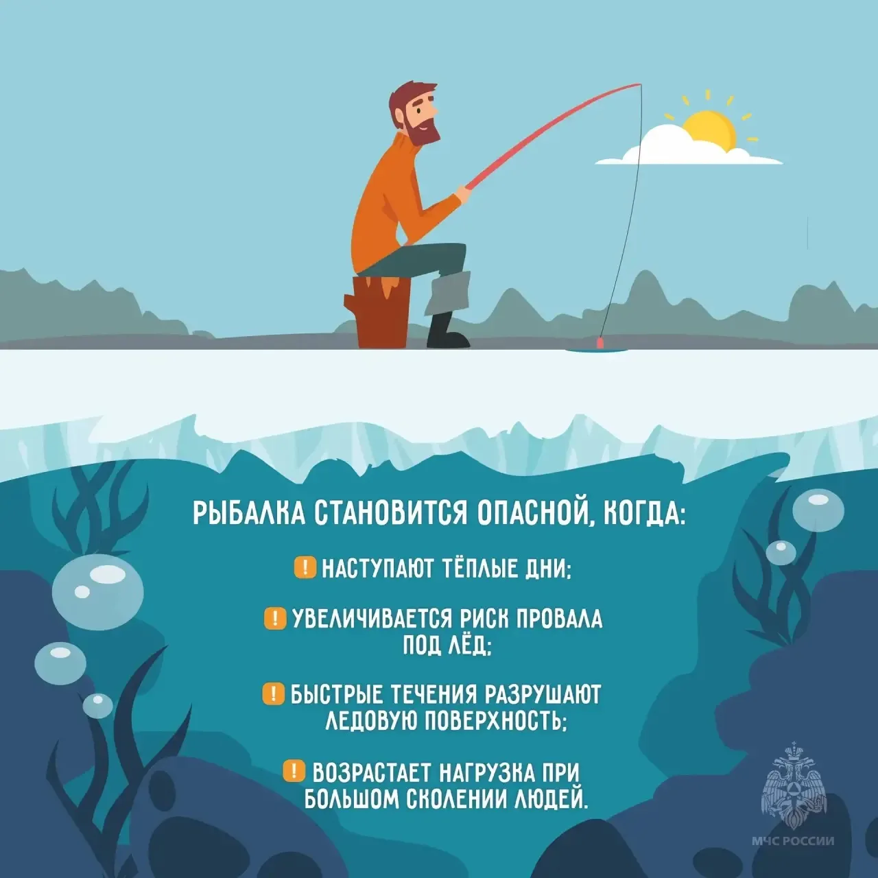 Сотрудники МЧС России призывают рыбаков-любителей быть предельно внимательными и не рисковать жизнью ради улова.
