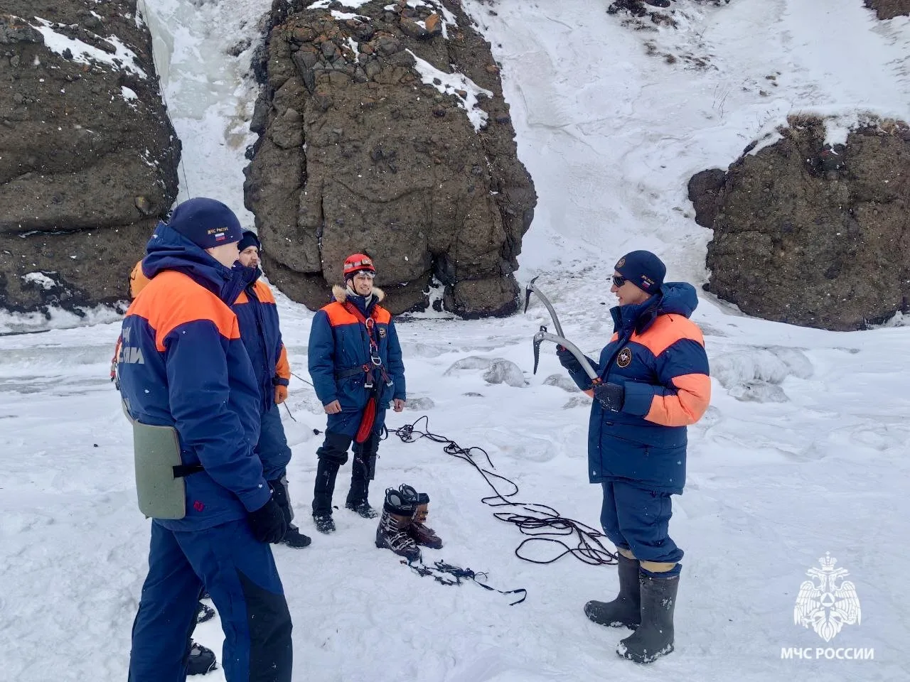 В Макаровском районе Сахалинской области завершились двухдневные учебно-тренировочные сборы по горной подготовке. Сотрудники поисково-спасательного отряда имени В.А. Полякова оттачивали профессиональное мастерство в естественных условиях — на ледопадах бухты Тихой.