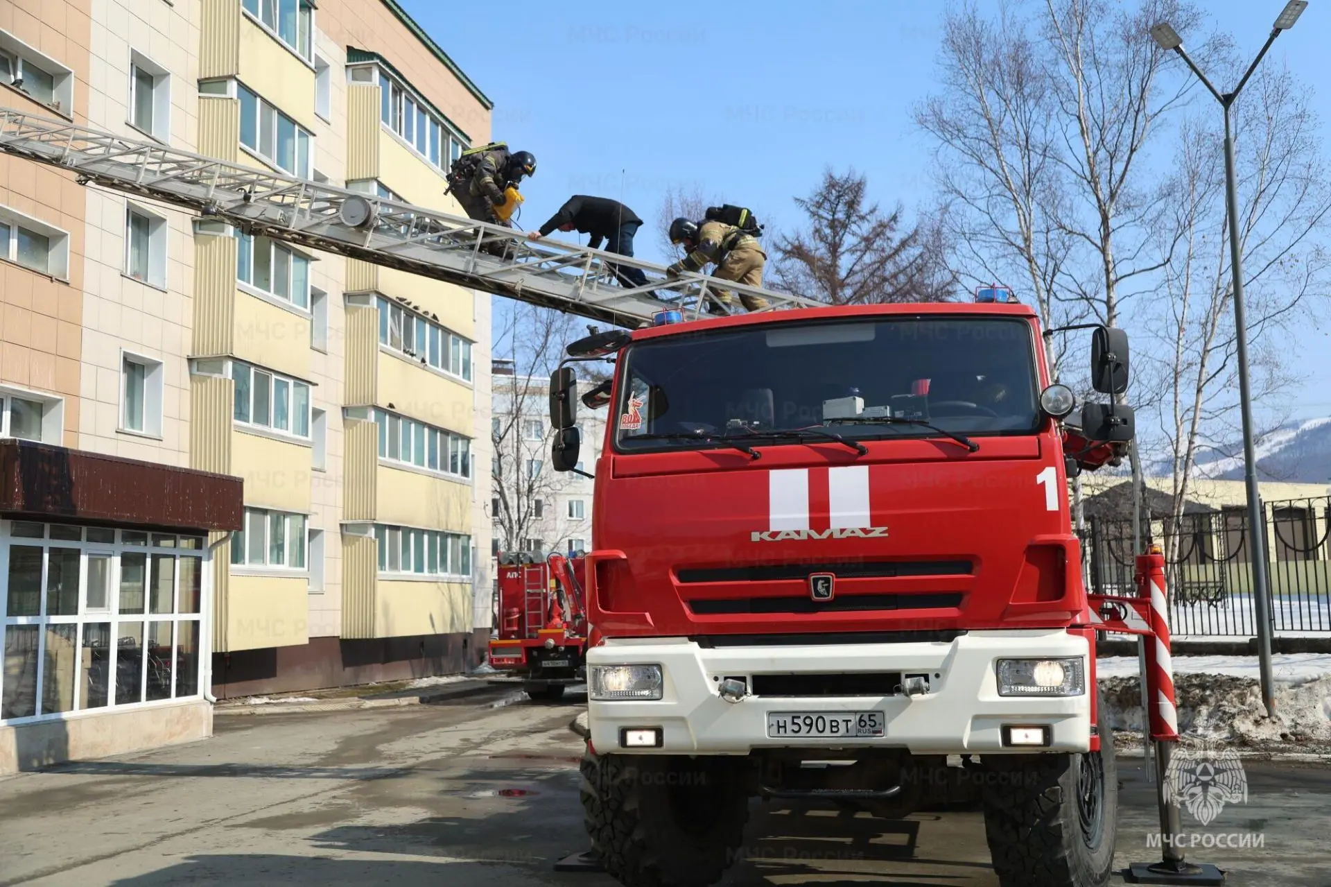 На вооружении в Сахалинской области используются два основных вида автолестниц, которые выдвигаются на высоту 30 и 50 м.