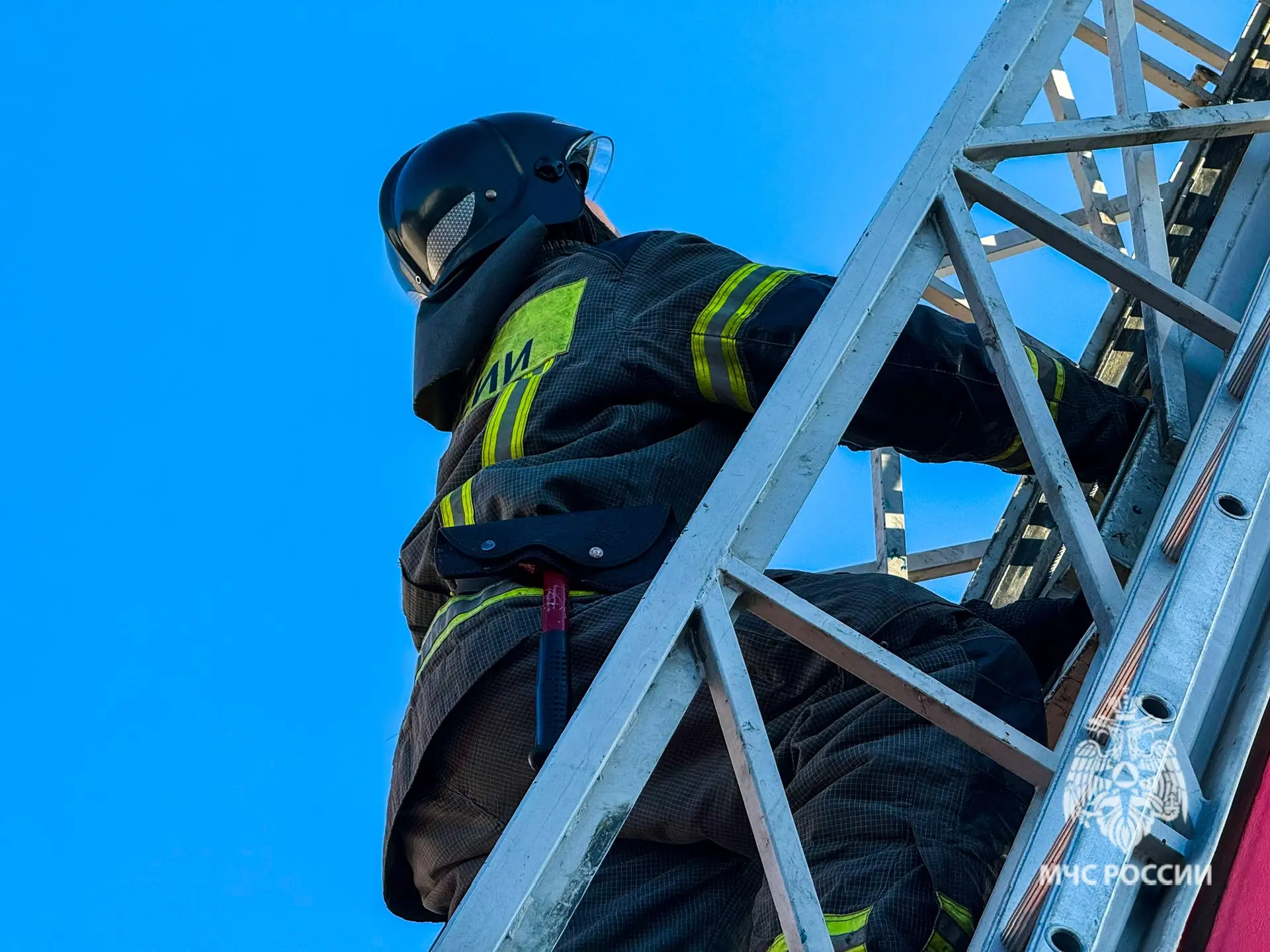 По сигналу к месту происшествия убыли дежурные караулы. Звенья газодымозащитной службы провели разведку, обнаружили очаг возгорания, эвакуировали условных пострадавших — в том числе с помощью высотной техники. Пламя ликвидировали на 60 квадратах.