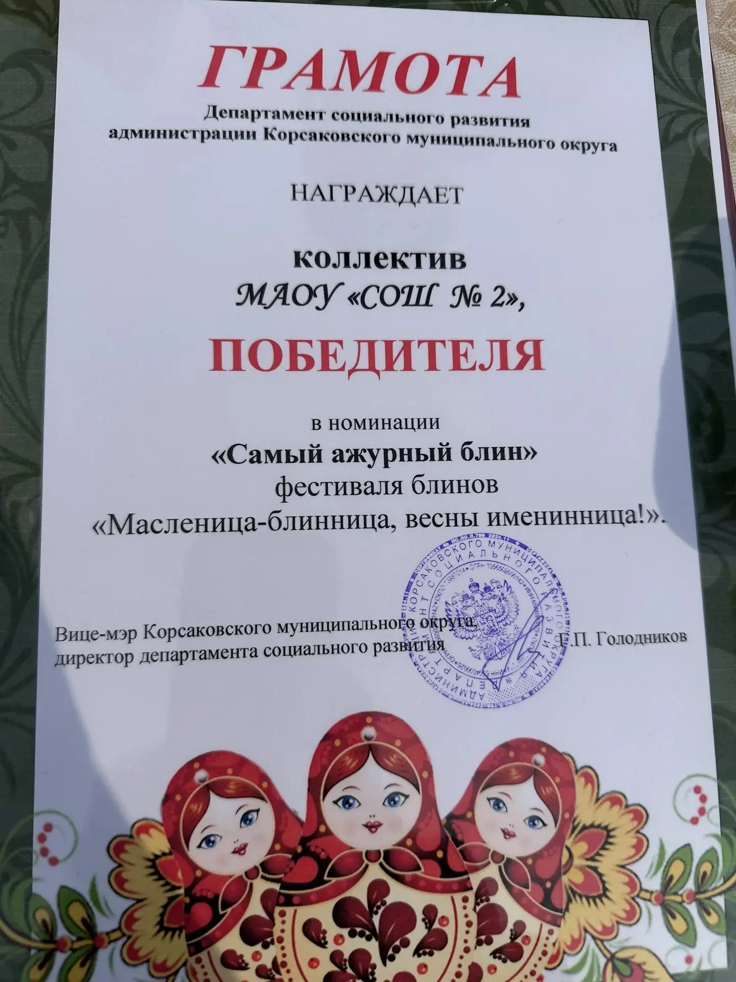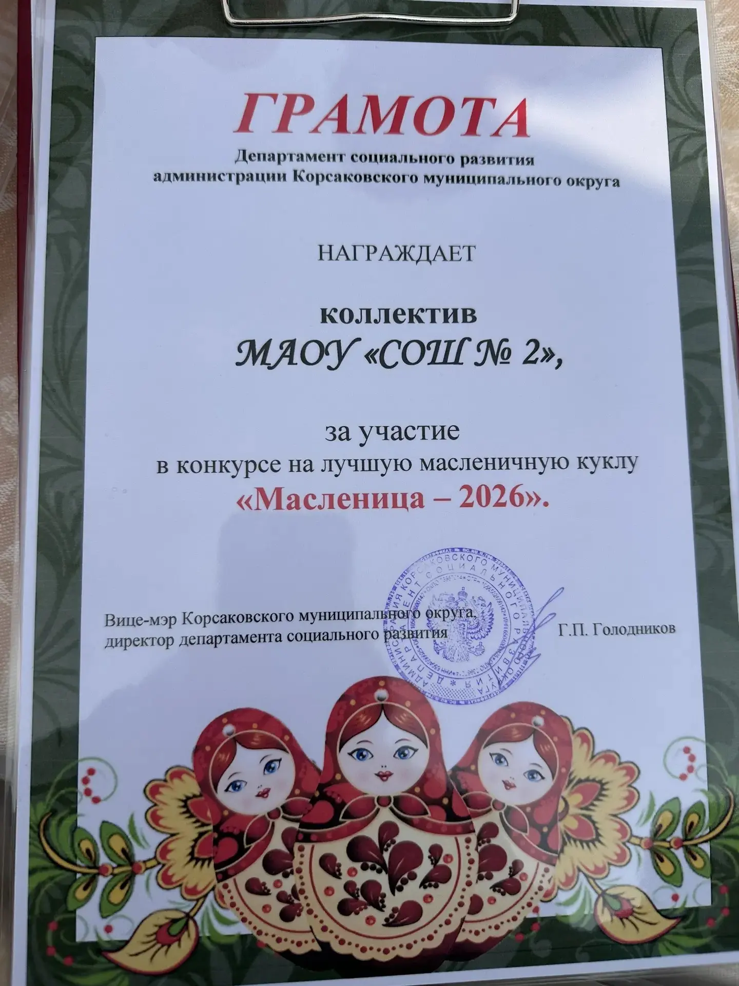 «...А еще сегодня на площади красовалась наша кукла Масленица! Мы сделали её сами, вложив в неё всё тепло и ожидание весны. Яркая, нарядная и по-настоящему праздничная — она стала героиней праздника!»