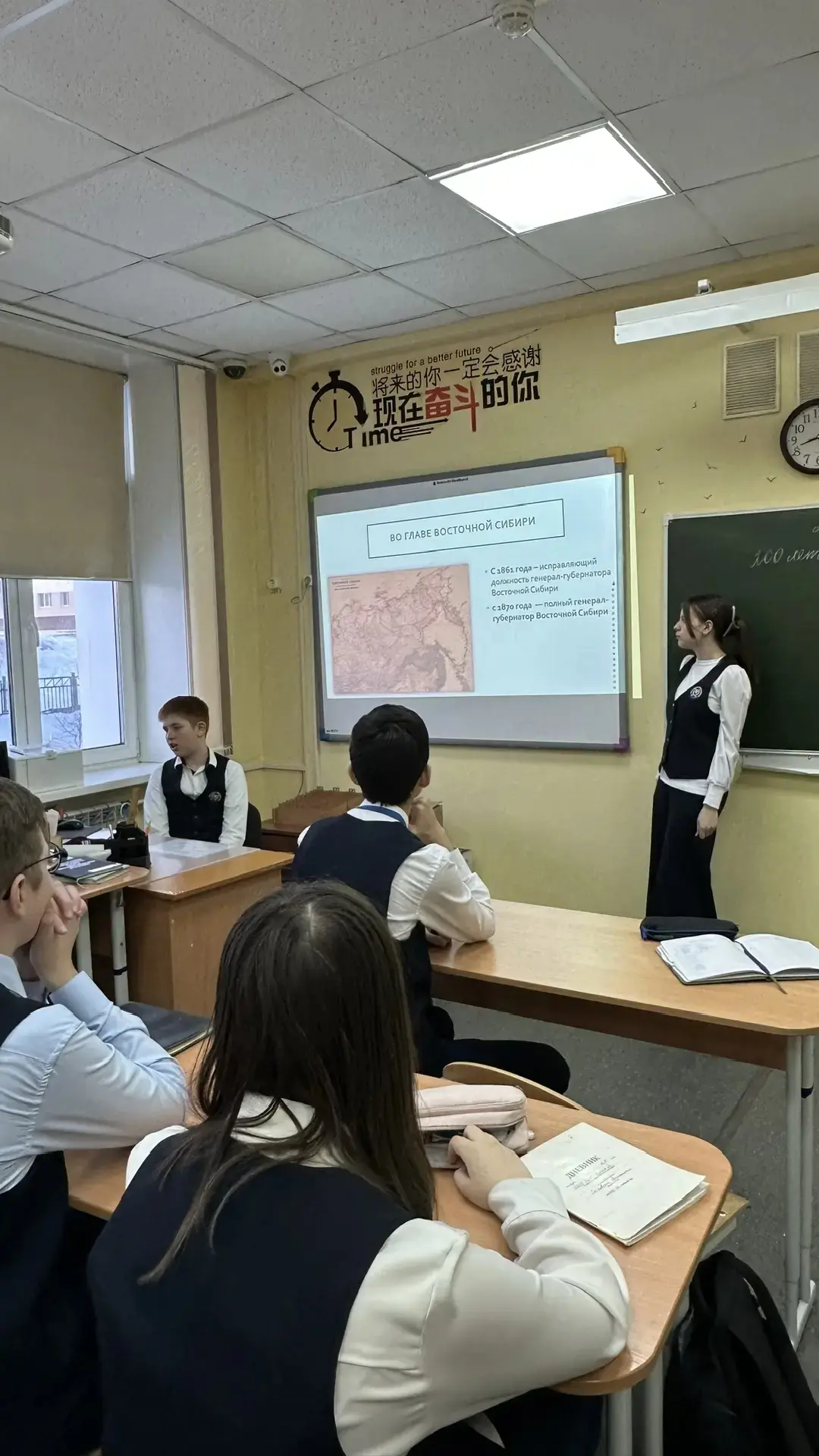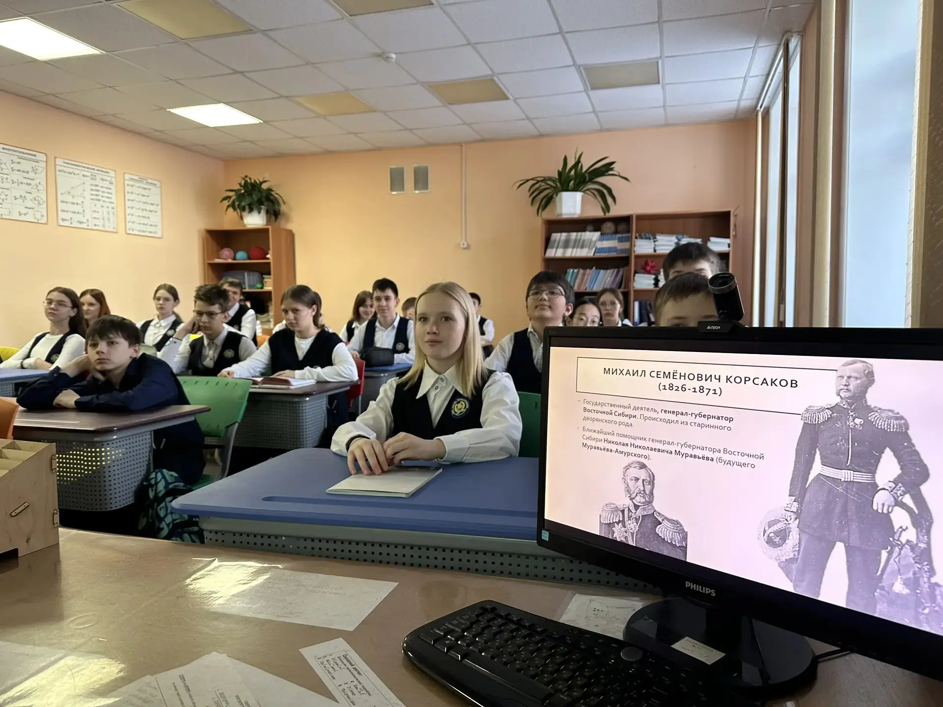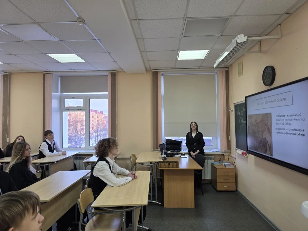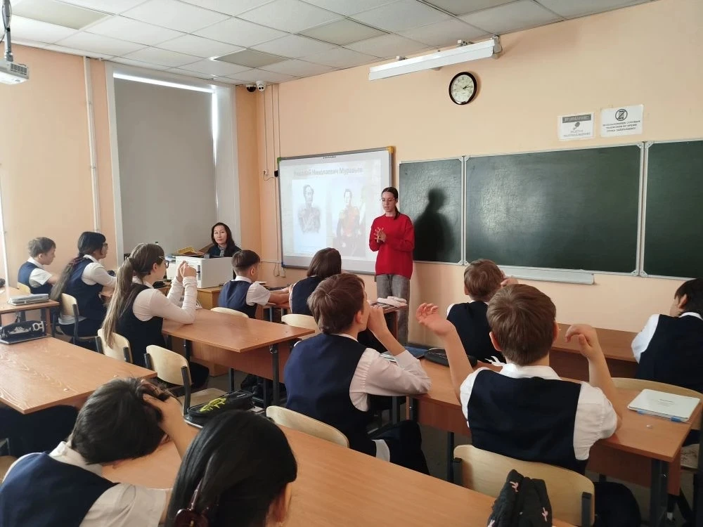 Ученики узнали о судьбе генерал-губернатора Восточной Сибири, его вкладе в освоение Дальнего Востока и о том, почему именно в его честь был назван наш город.