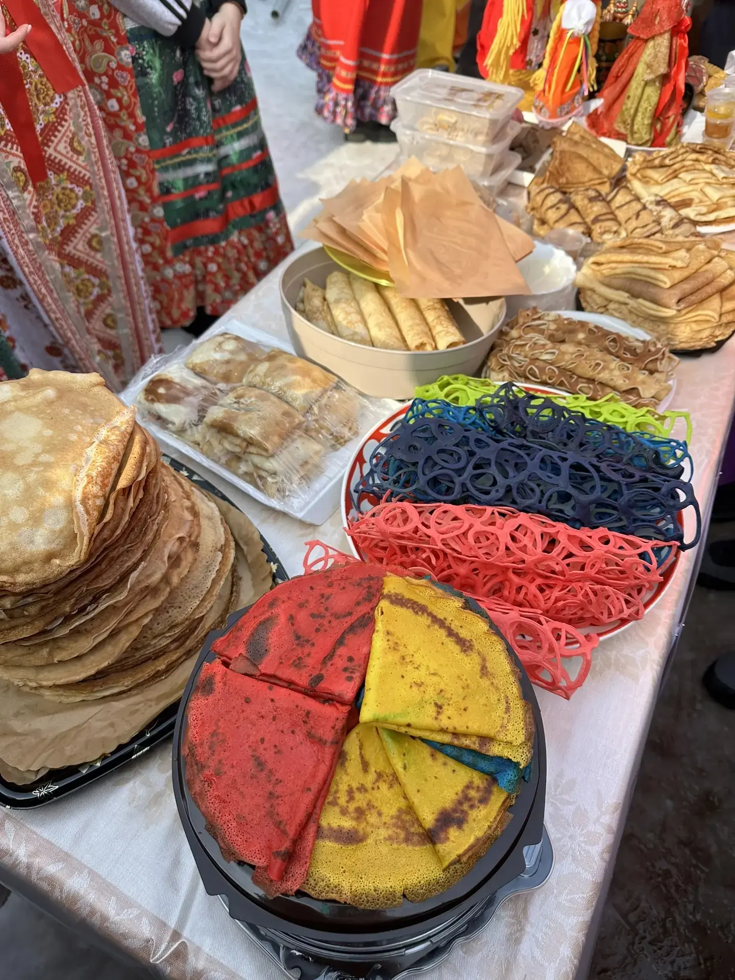 🥞🥞🥞А какой же праздник без угощения? Наш праздничный стол на Фестивале блинов буквально ломился от яств. Блины на любой вкус — золотистые, ажурные, с самыми разными начинками — стали настоящим хитом дня.