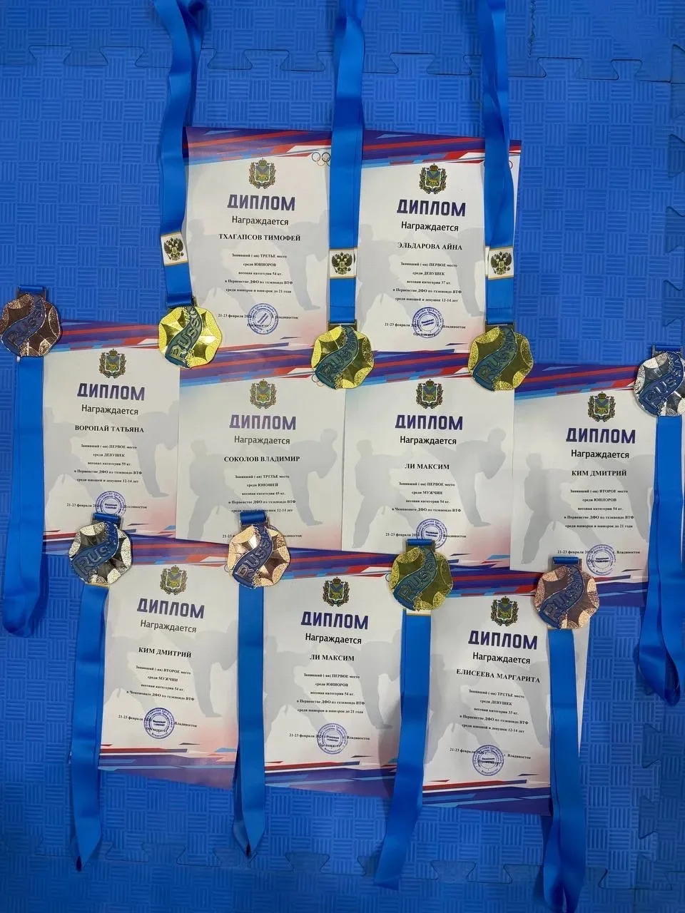 В итоге у нас 9 медалей: 4 золотых, 2 серебряных и 3 бронзовых. У нас четыре путевки на первенство России по тхэквондо!