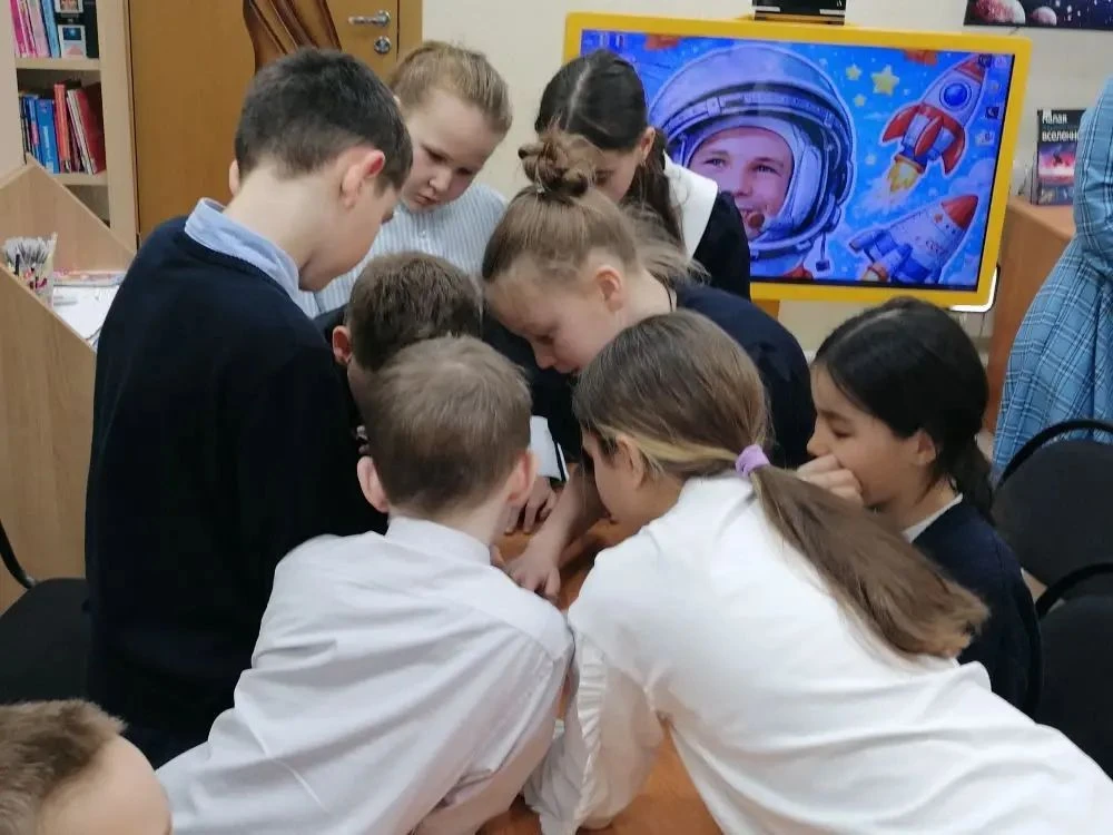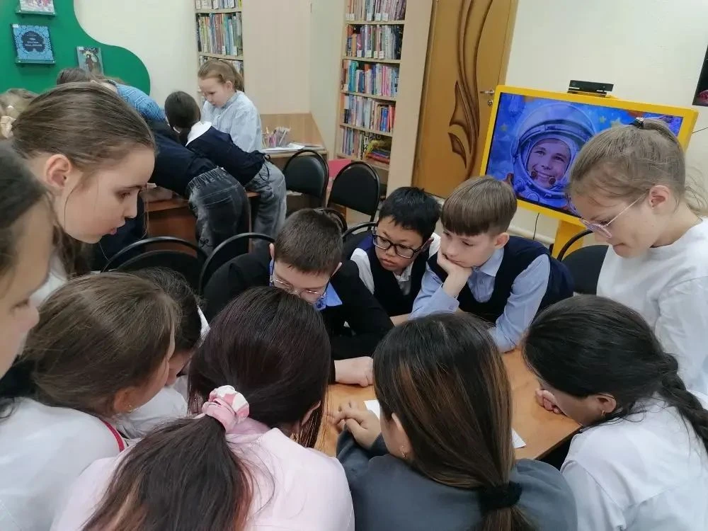 В честь 65 - летия первого полёта человека в космос в библиотеке прошла интересная игра"Космические лабиринты". Две команды"Комета" и "Вселенная" проходили испытания по станциям"Космозагадки", "Космохудожники", "Космоматематика," Космопутаница" и другие. Дети показали отличные знания и сплочённую работу в группах. Победила дружба со счётом 38:38.