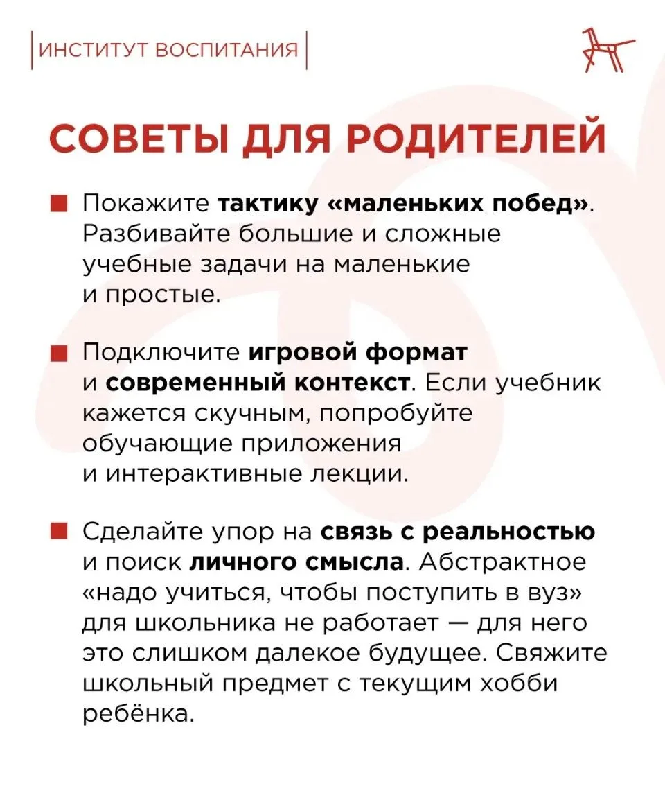 В карточках собрали советы, которые помогут понять, почему мотивация «сломалась» и какие скрытые причины стоят за нежеланием учиться. А больше полезной информации вы найдёте в статье на сайте «Семья и школа».