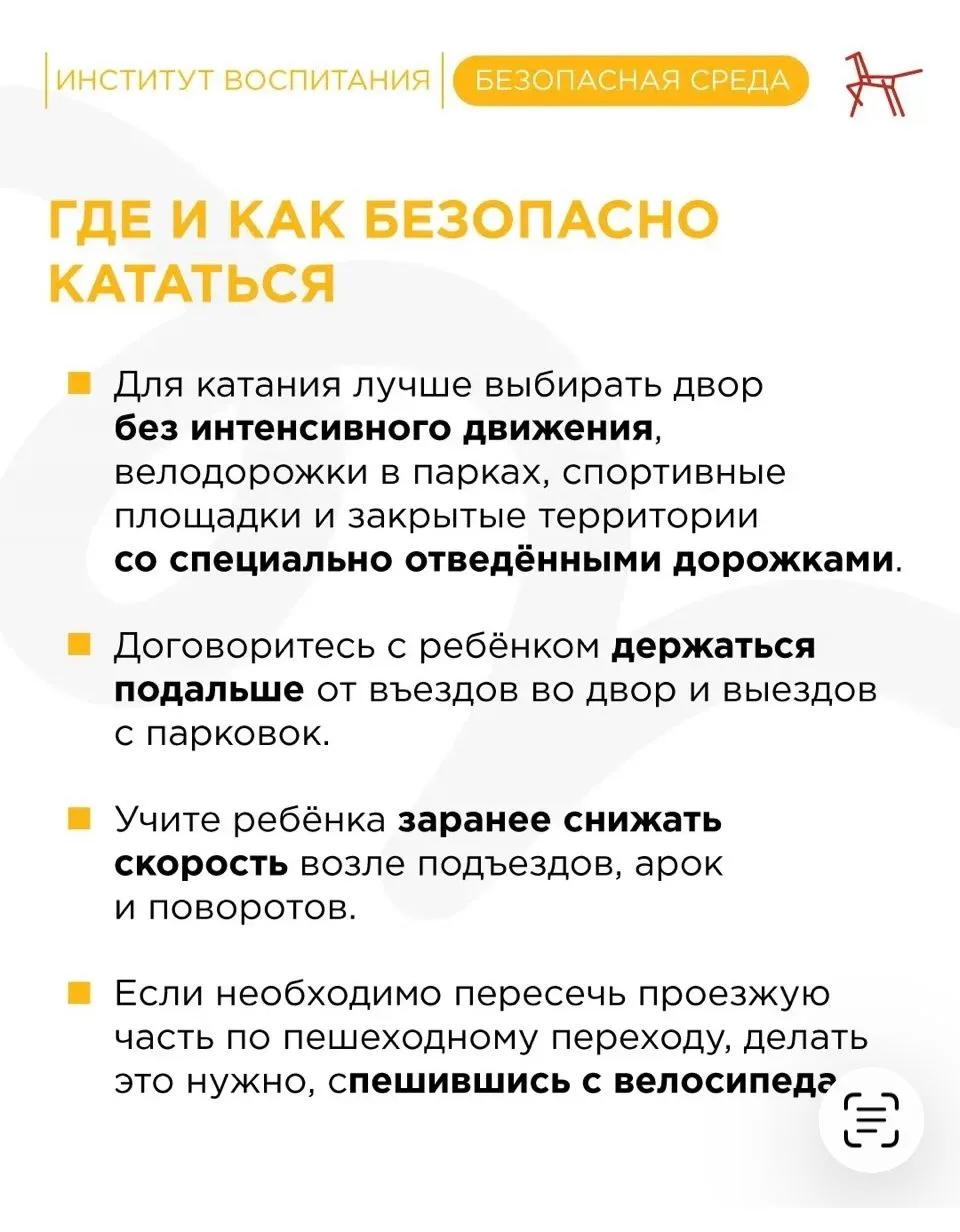 Поэтому с детьми важно заранее обсудить простые и понятные правила: где лучше кататься, как вести себя рядом с проездами и почему защитная экипировка обязательна. В карточках собрали основные рекомендации для родителей.