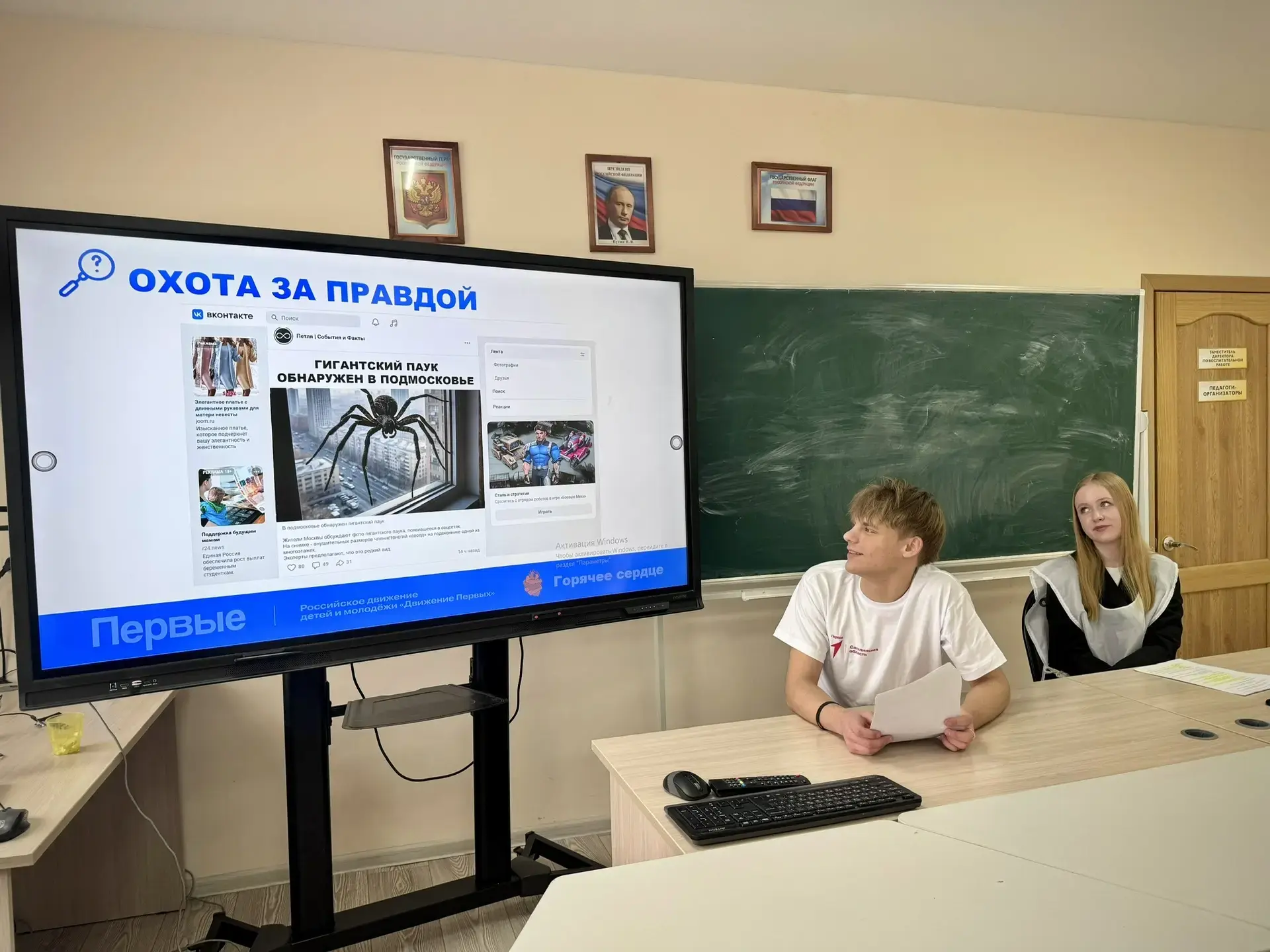 Активисты Движения Первых и активисты волонтёрского движения "Горячее сердце" провели для учащихся 7 «А» класса просветительское мероприятие, направленное на профилактику правонарушений в цифровой среде.