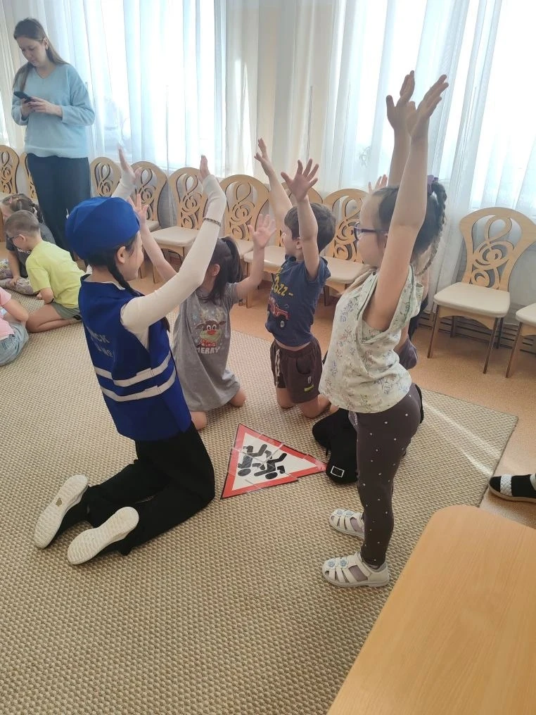 Ребята в игровой форме напомнили детям о правилах дорожного движения, рассказали, как правильно переходить дорогу, зачем нужны светофоры и дорожные знаки. Малыши активно участвовали в заданиях, отвечали на вопросы и с интересом включались в беседу.