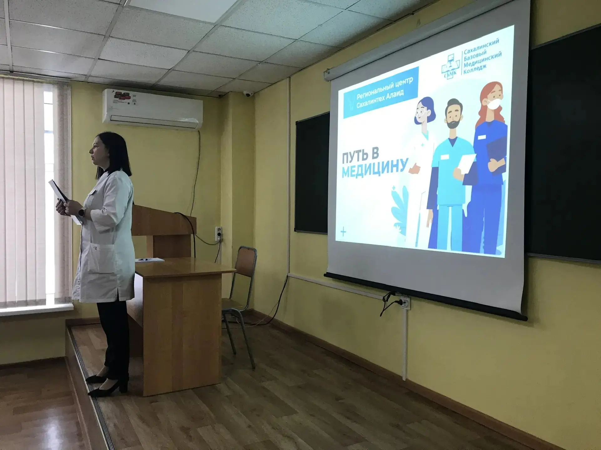 Ребята встретились с практикующими врачами разных специальностей, узнали об особенностях медицинских профессий, познакомились с материально-технической базой ГБПОУ «Сахалинский базовый медицинский колледж» и посетили профильные лаборатории.