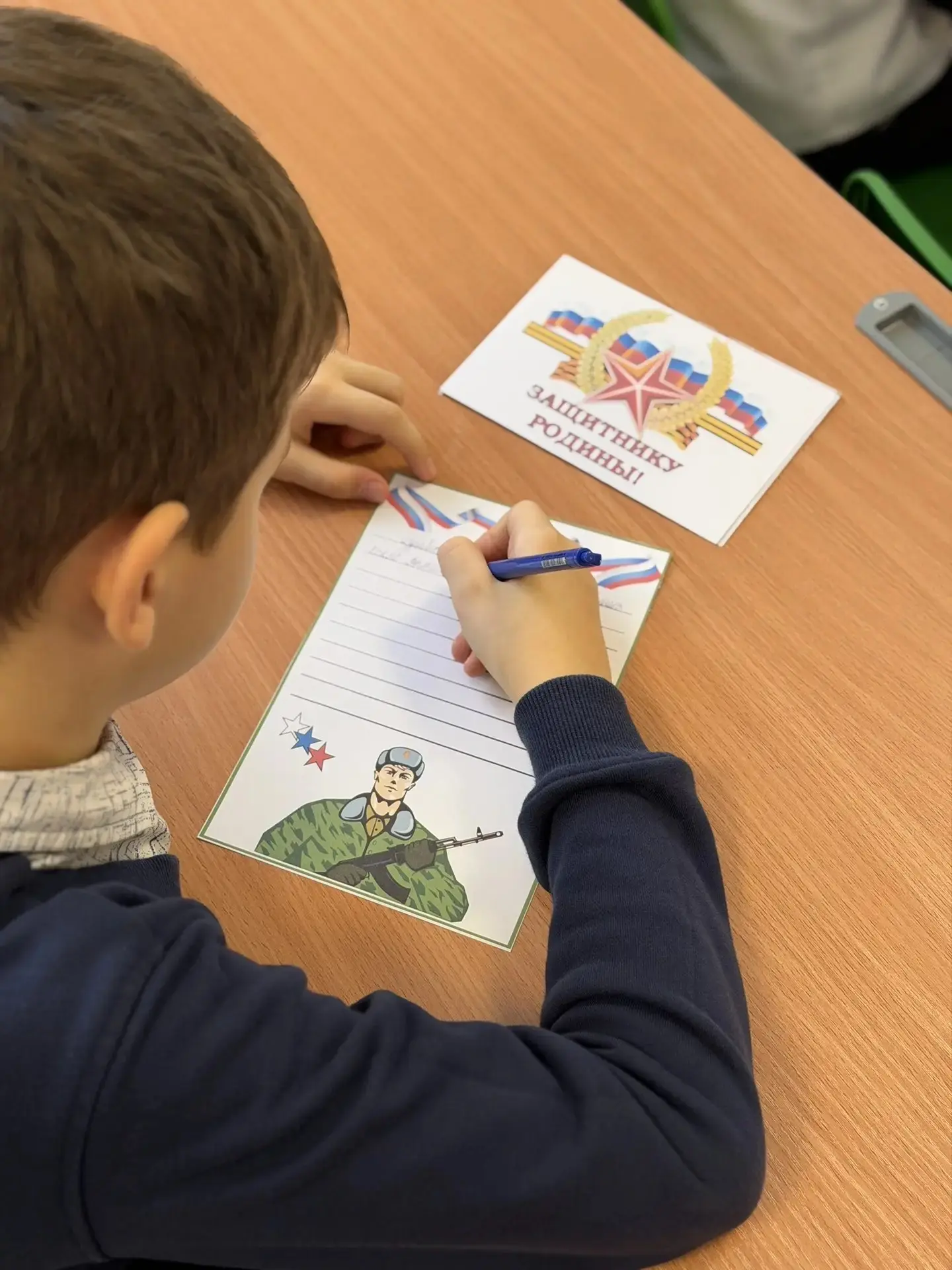 Ученики 3 «А» класса вместе с классным руководителем Губрий О.Н. подготовили трогательные открытки для своих пап ко Дню защитника Отечества 🇷🇺