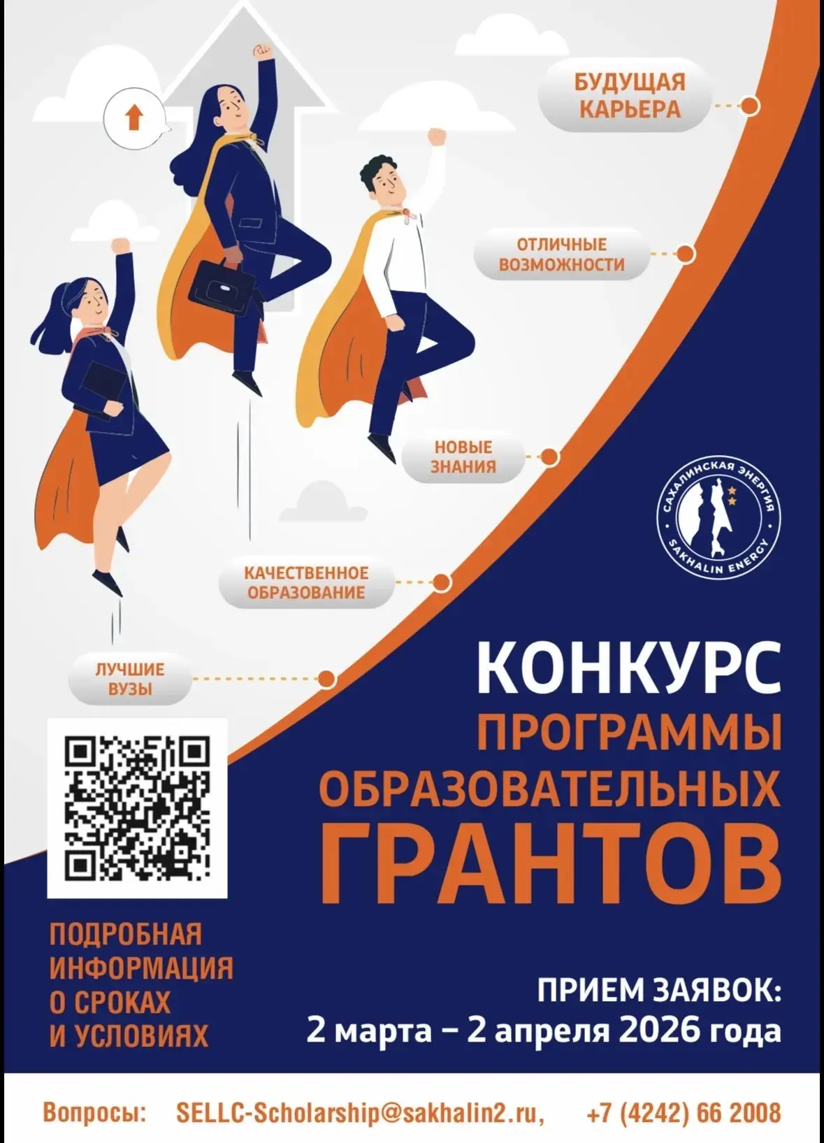 ООО «Сахалинская Энергия» объявляет о приеме документов для участия в ежегодном конкурсе программы образовательных грантов среди сахалинских выпускников средних общеобразовательных школ и учреждений профессионального образования 2026 года.