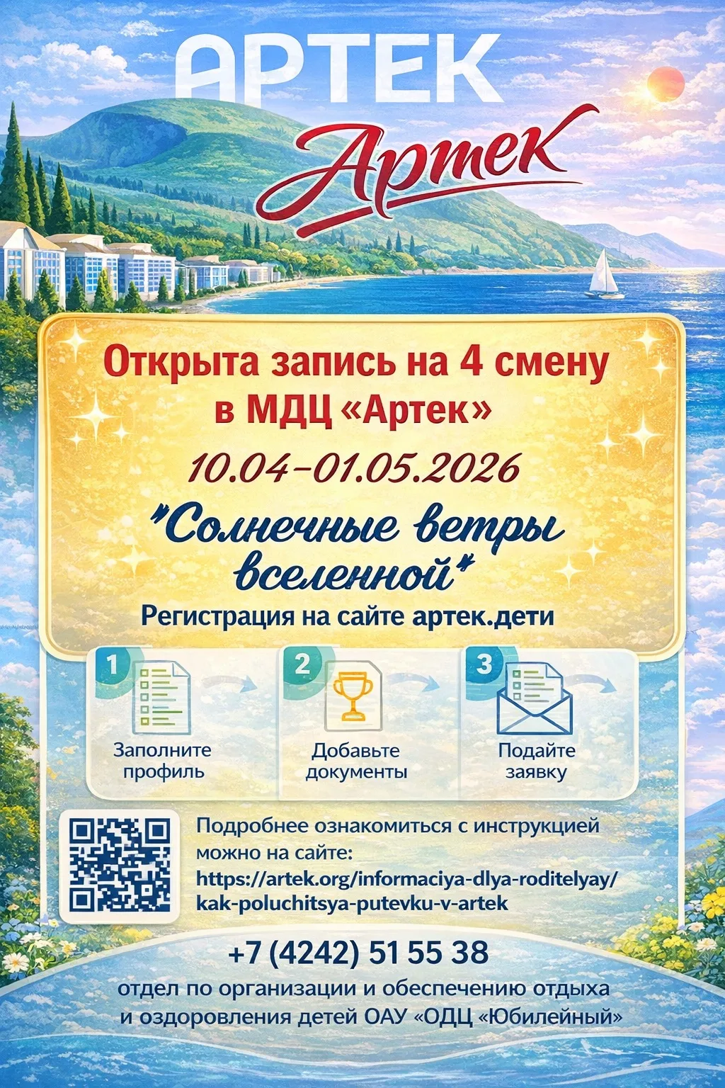 🌟 Открыта запись на 4 смену в МДЦ «Артек»! 🌟
