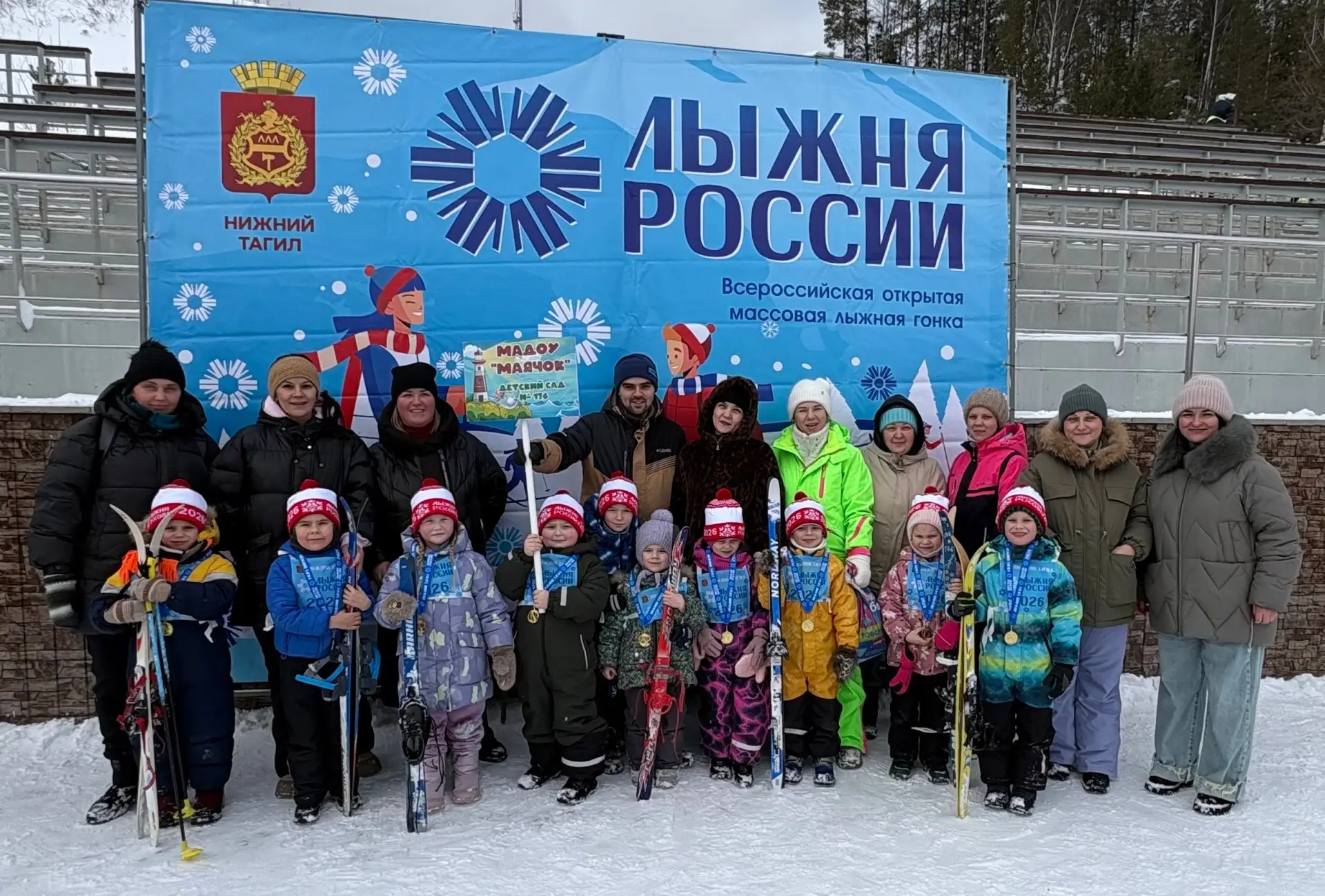 ⛷️98 воспитанников МАДОУ «МАЯЧОК» приняли участие в муниципальном этапе Всероссийской массовой лыжной гонки «Лыжня России-2026» .