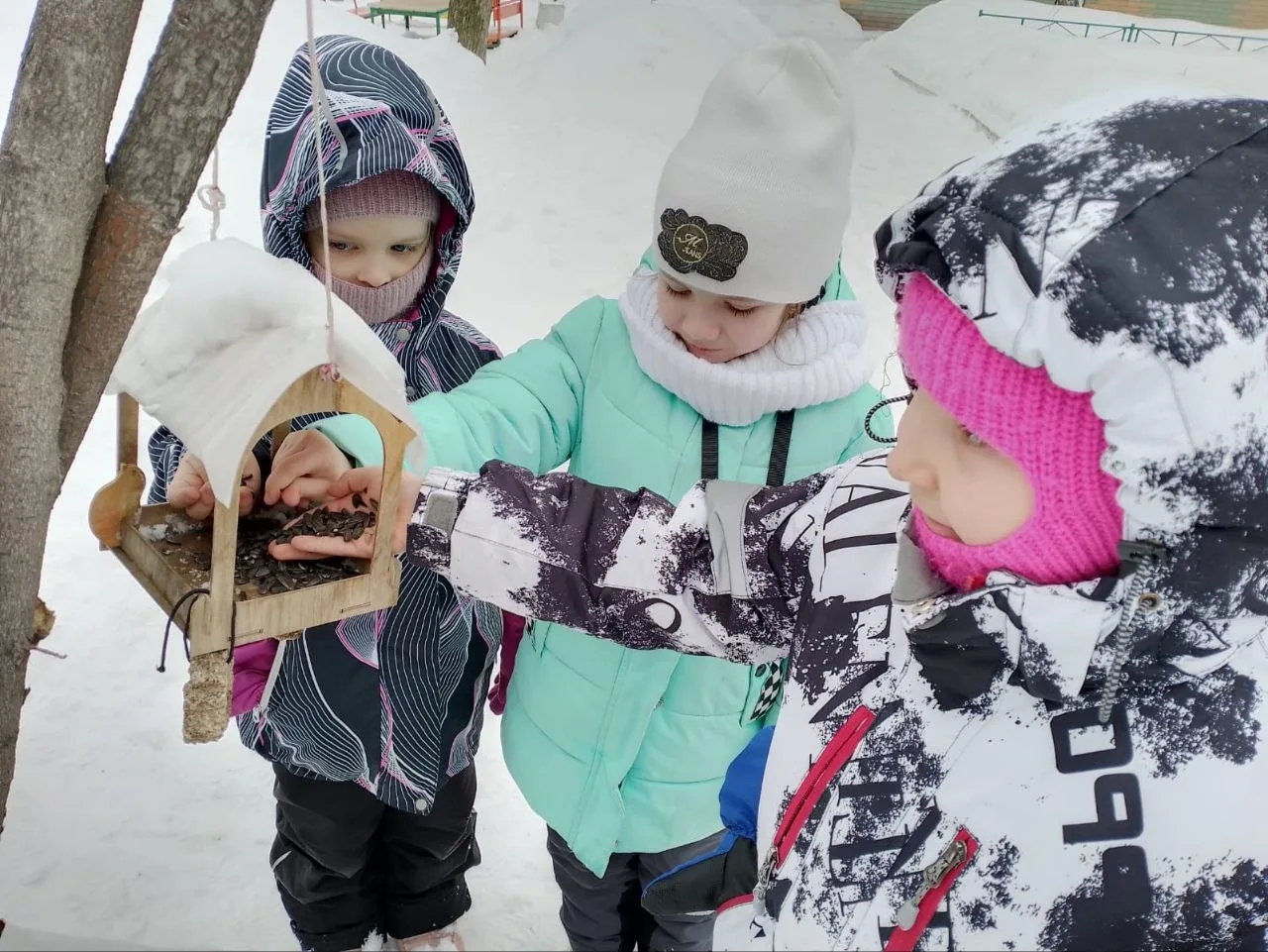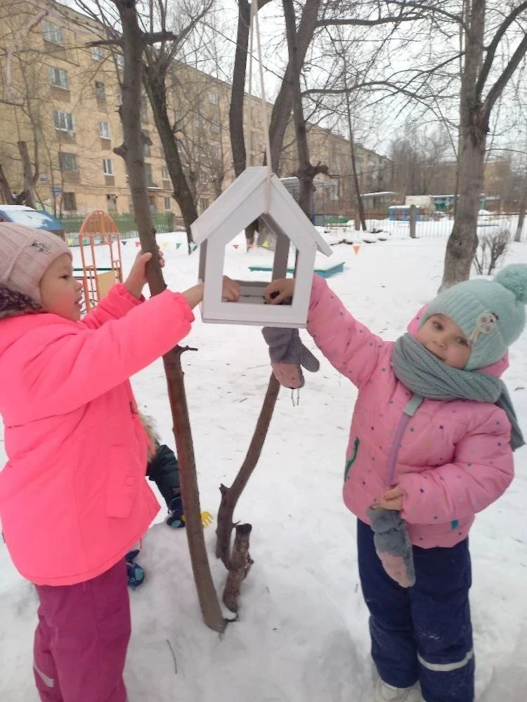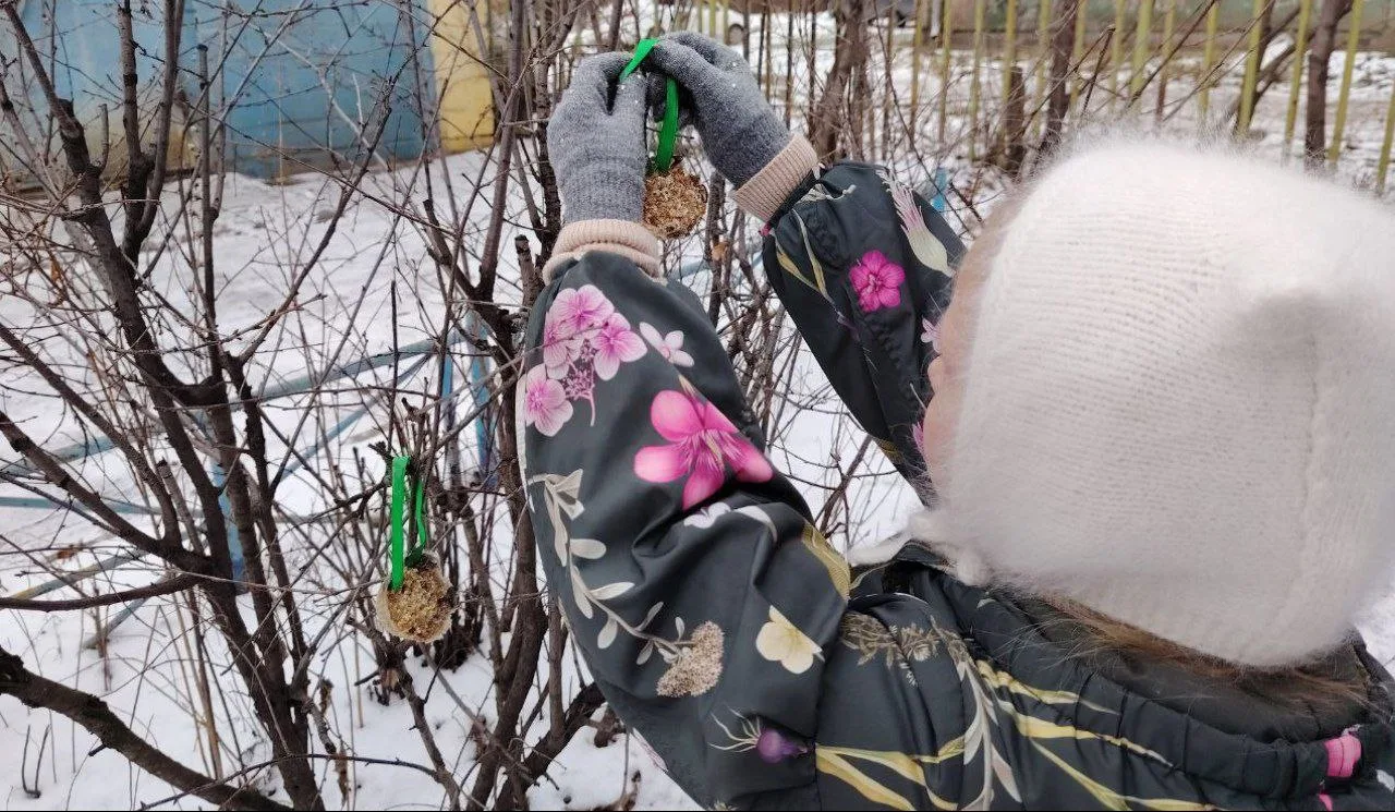 Заранее, дети вместе с воспитателями и родителями смастерили кормушки и развешали на участках детских садов объединения "Детство". Каждый день они подкармливают пернатых друзей.