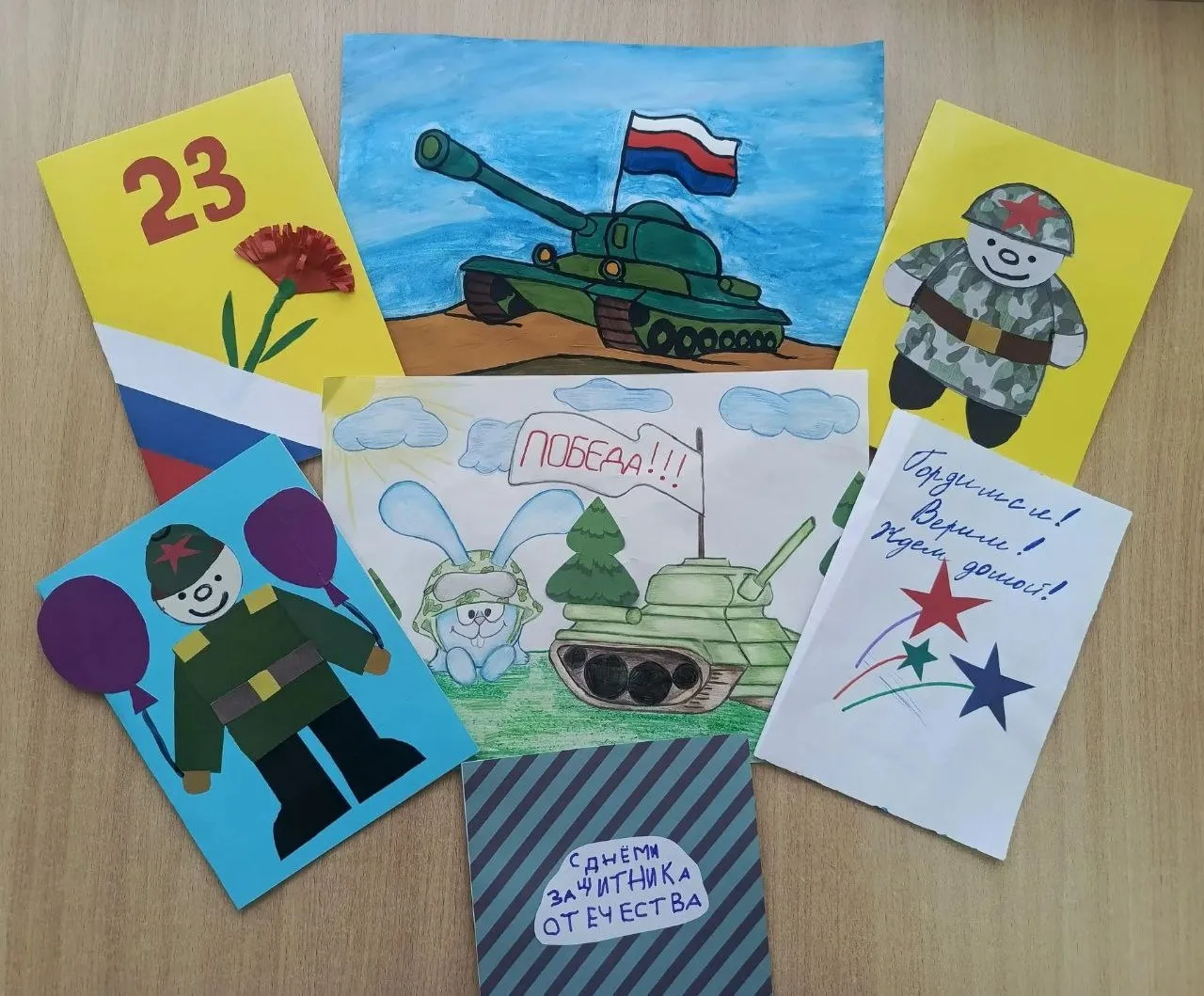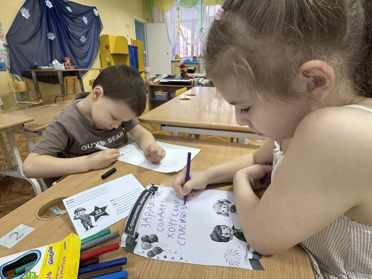 🎨Ребята рисуют яркие рисунки: танки, самолеты, российские флаги, а главное – улыбающихся солдат. Эти детские шедевры становятся трогательным дополнением к написанным от души словам.