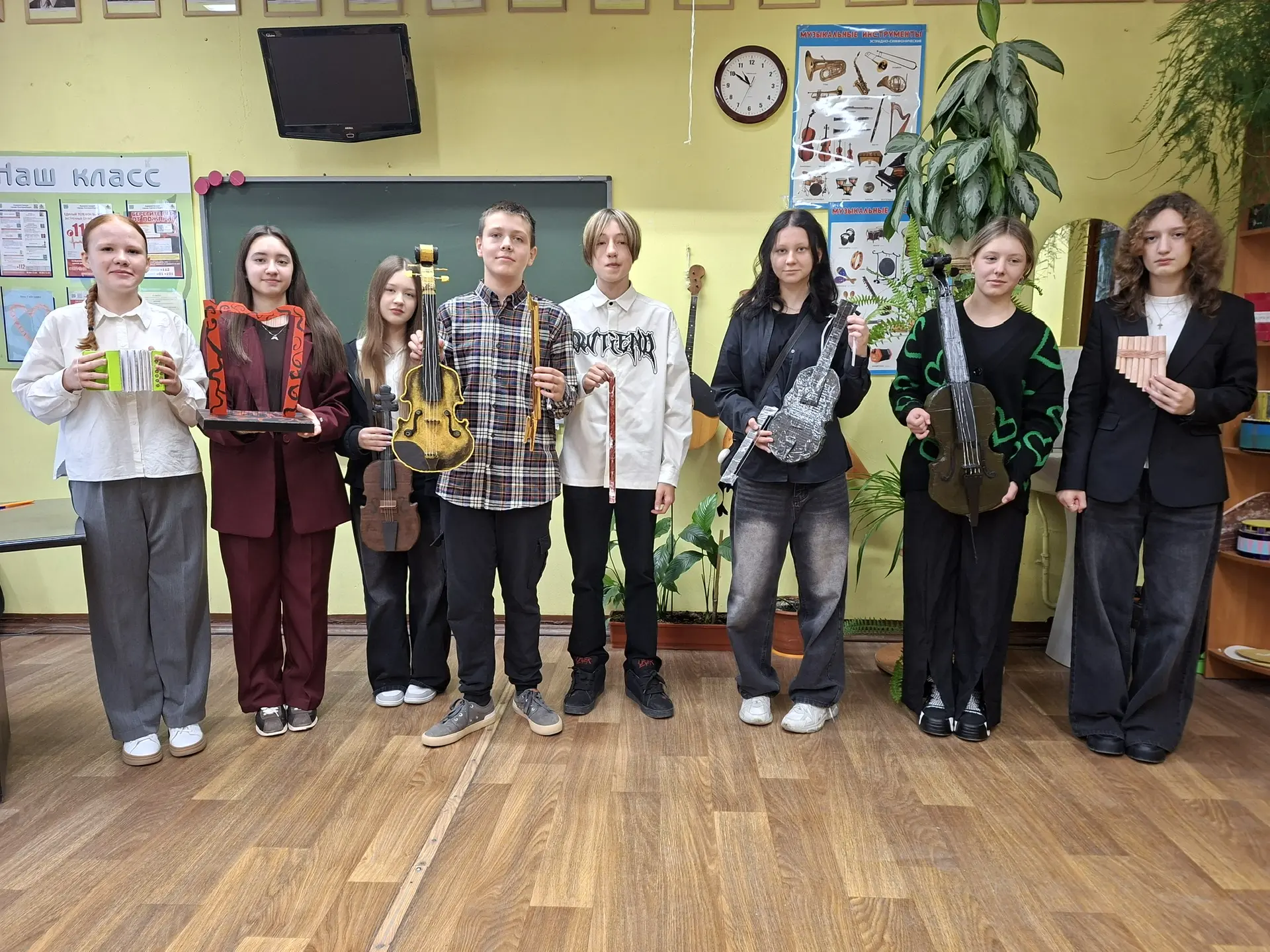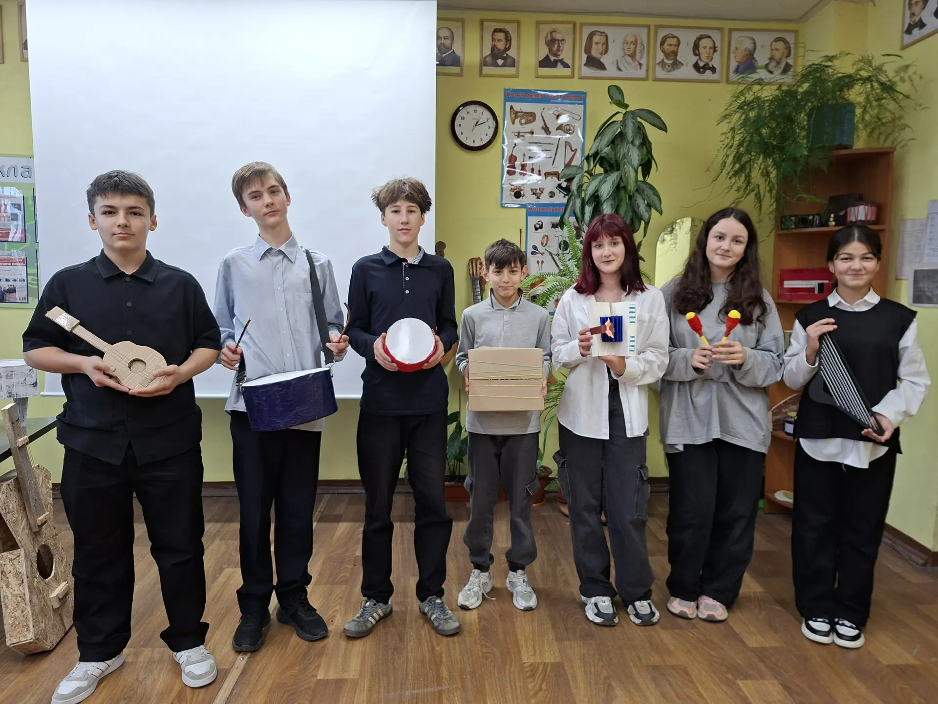 Обучающиеся 8-х классов нашей школы на уроках музыки вместе с Сушковой Юлией Олеговной защитили свои проекты «Музыкальный инструмент своими руками»!
