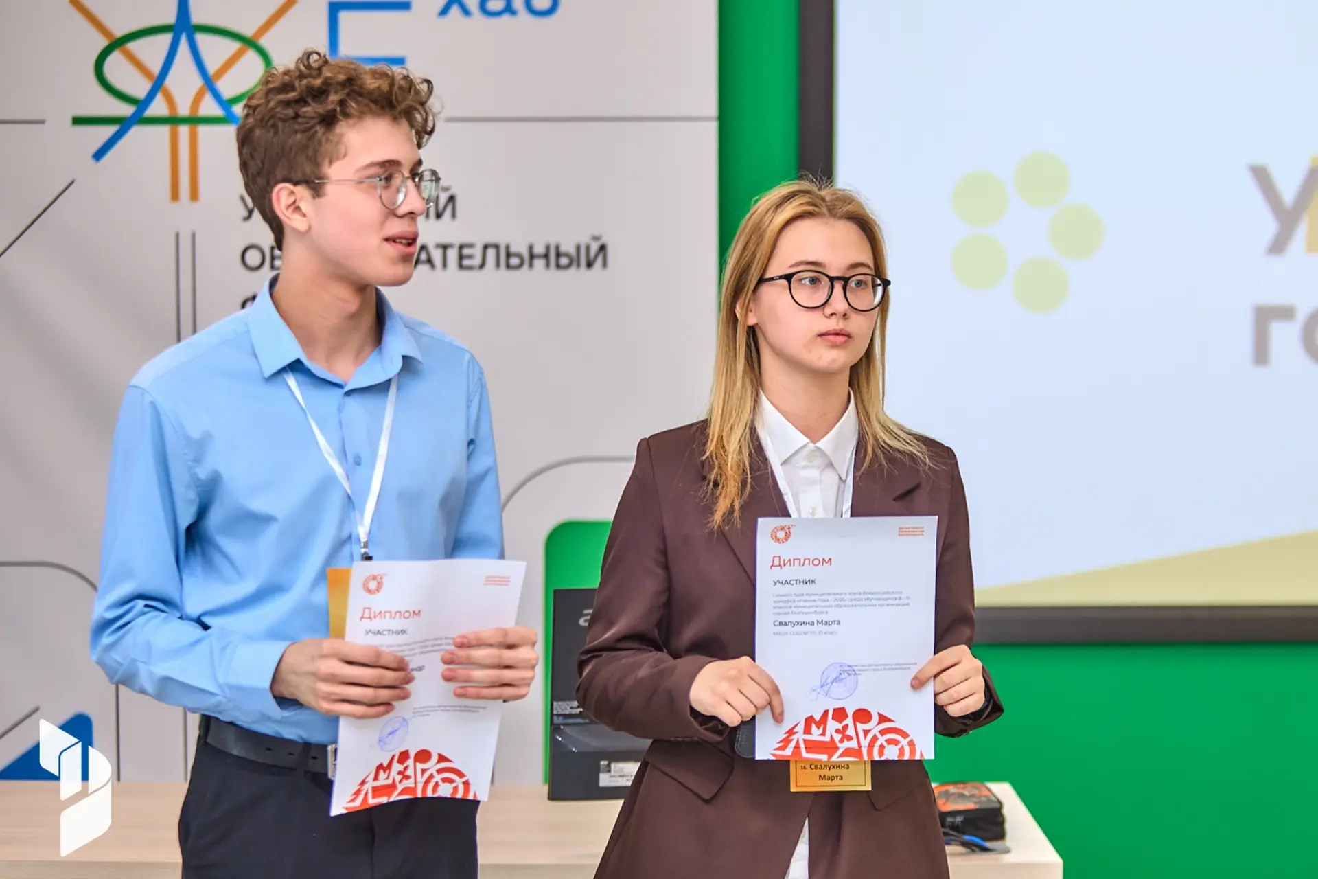 Нашу школу представили два педагога: учитель биологии, географии — Костова Яна Александровна и учитель начальных классов — Овчинникова Екатерина Васильевна.