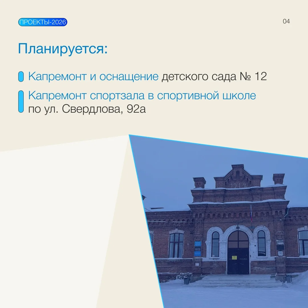В школе № 1, которая является объектом культурного наследия регионального значения, планируем обновить спортивный зал. Начался капитальный ремонт в школе № 13. Продолжим ремонт зрительного зала во Дворце культуры «Горизонт». В «Центре культуры и искусств» запланирована замена пожарной сигнализации. В микрорайоне Гавань достраивают 80-квартирный дом для детей-сирот.