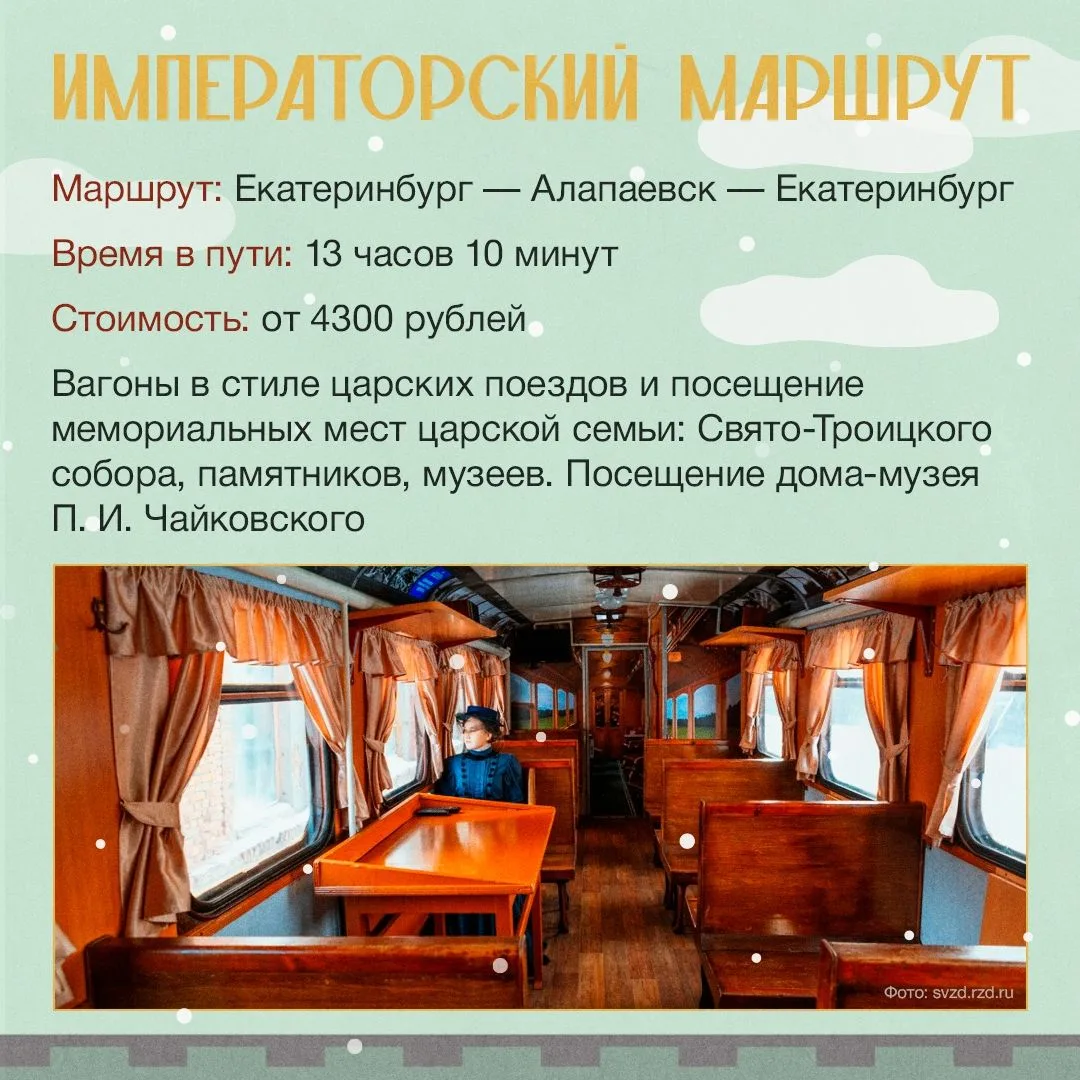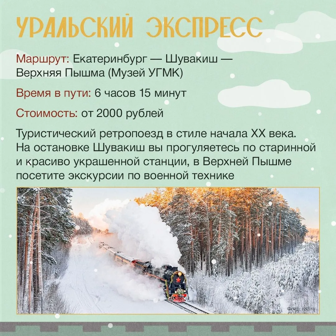 🚂 За окном — заснеженные уральские леса, а вы в вагоне начала XX века… В Свердловской области можно прокатиться на двух уникальных поездах, где каждая деталь — от мебели до сервиса — переносит в прошлое. Рассказываем о них в карточках ✨