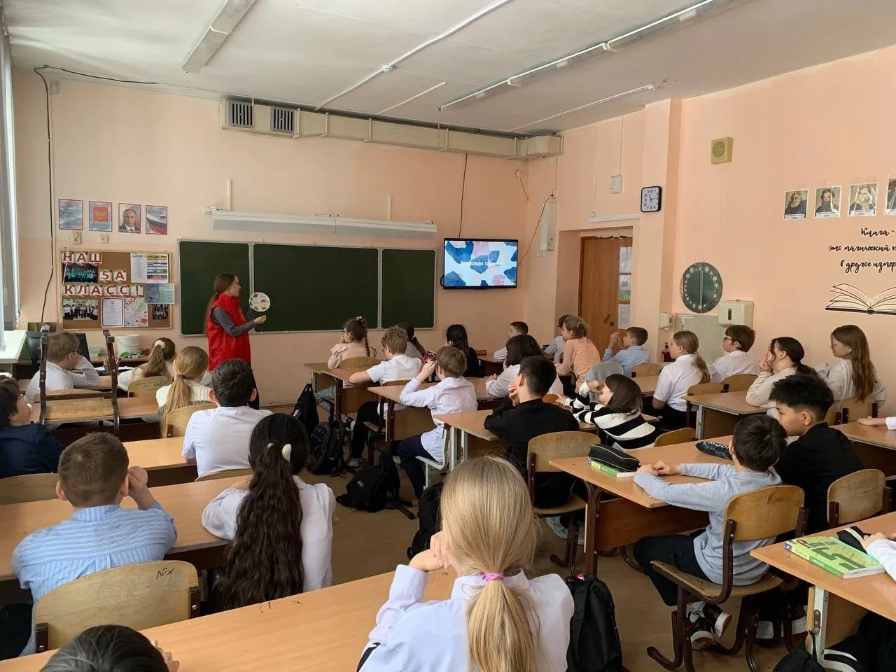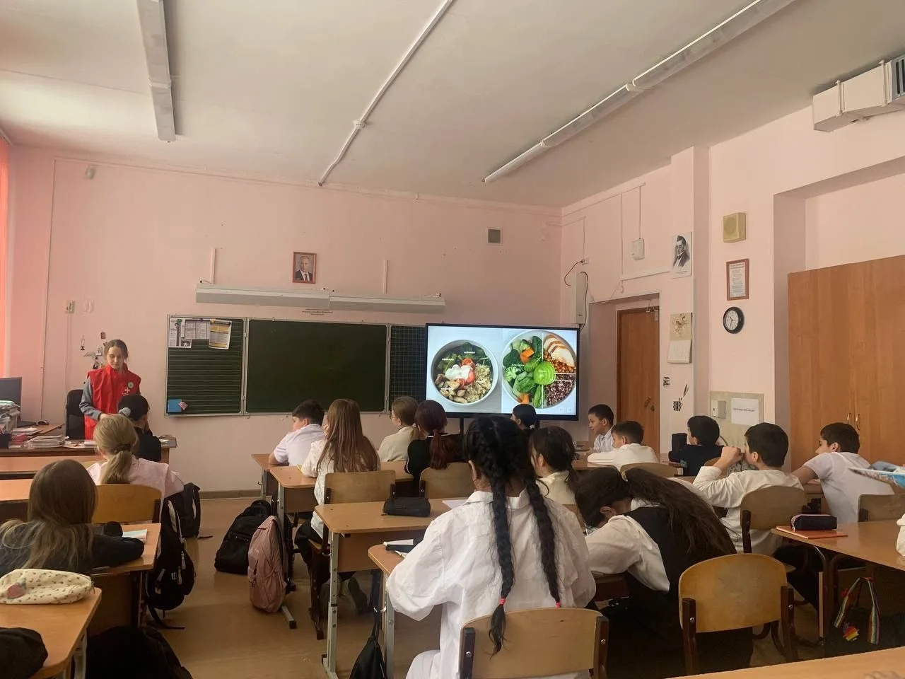 Волонтеры-медики УрГУПС снова навестили пятиклассников школы №183. Студентка София Альмакаева (СД-115) рассказала ребятам о «Здоровой тарелке»: как собрать рацион, чтобы было и вкусно, и полезно.