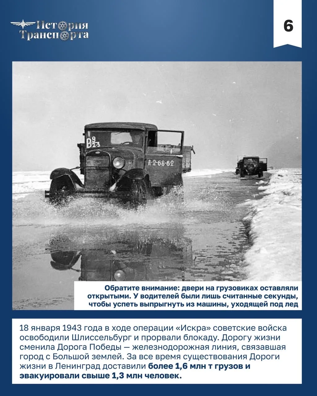 Подробнее о роли транспорта и героях Дороги жизни — в карточках⬆️