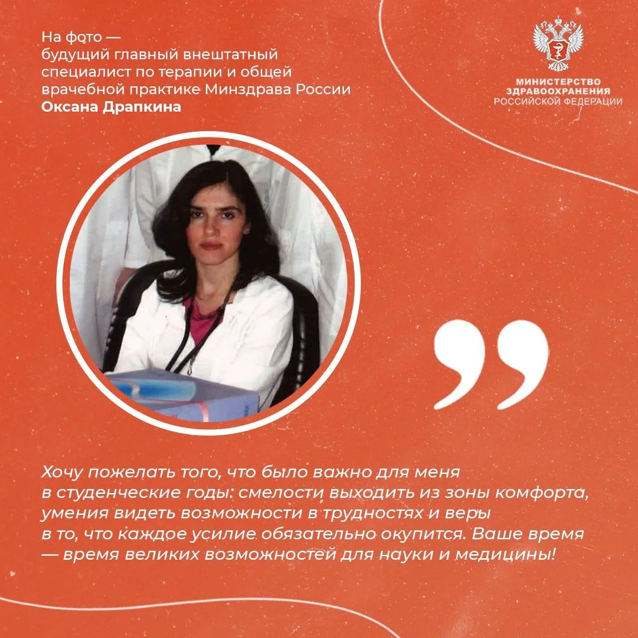 ➡️ Ко Дню российского студенчества главные внештатные специалисты Минздрава России поделились своими советами и словами поддержки для тех, кто сегодня делает первые шаги в профессии. Их опыт, знания и личные ориентиры — важный ресурс для будущих врачей.
