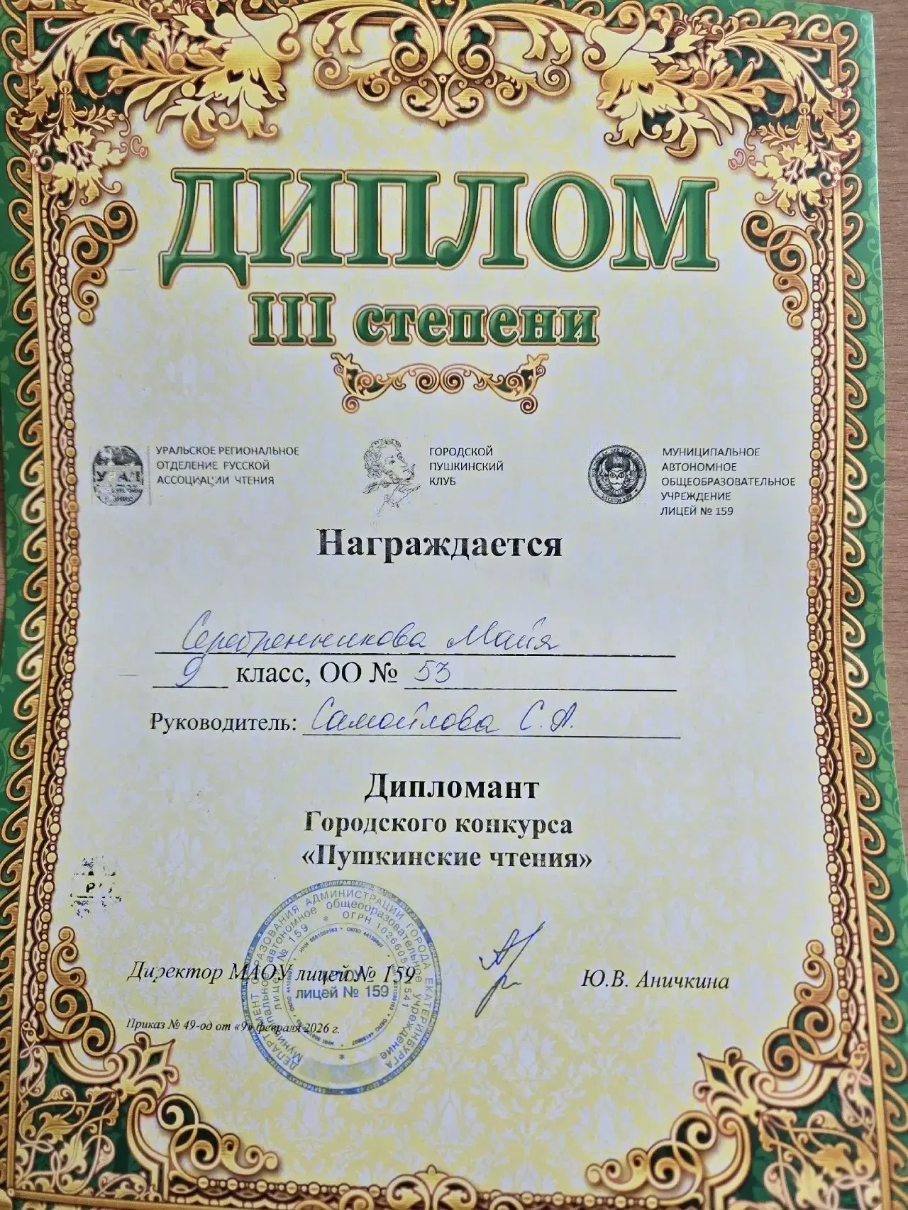 14 февраля наши школьники блистали на Городских Пушкинских Чтениях в 159 лицее!