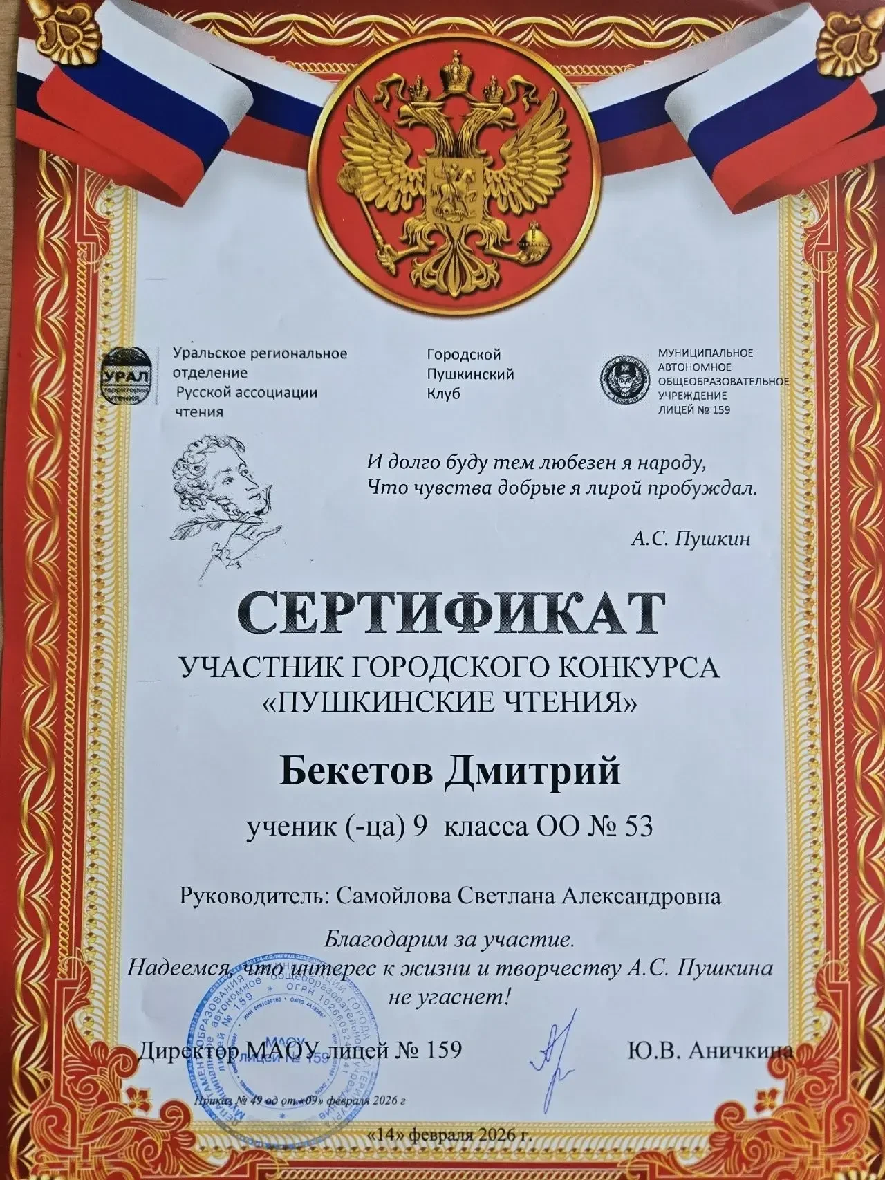 Бекетов Дмитрий (9 В) — Диплом участника!