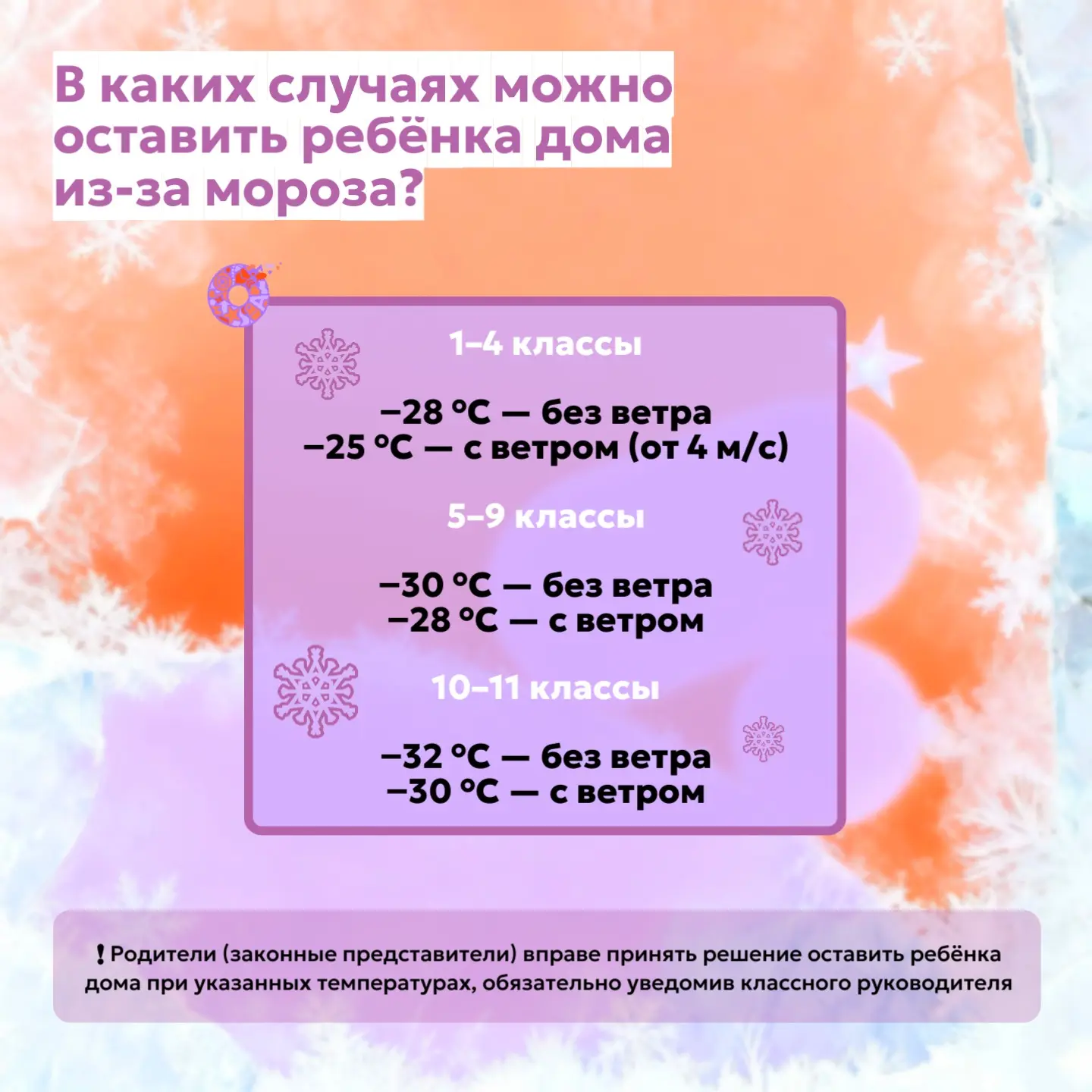 🌨 Когда мороз — уважительная причина? Разбираемся, при каких температурах ребёнок может остаться дома.