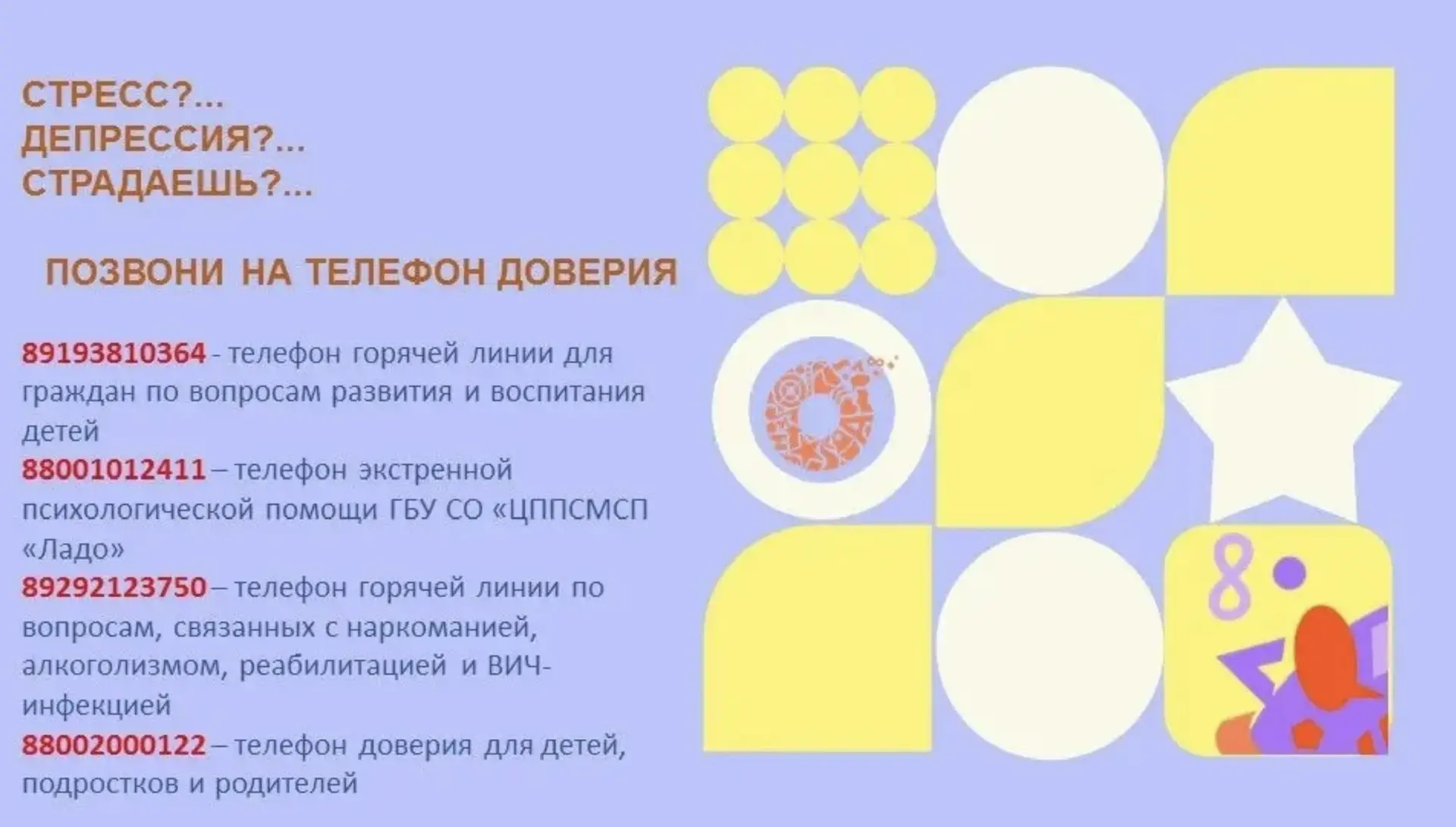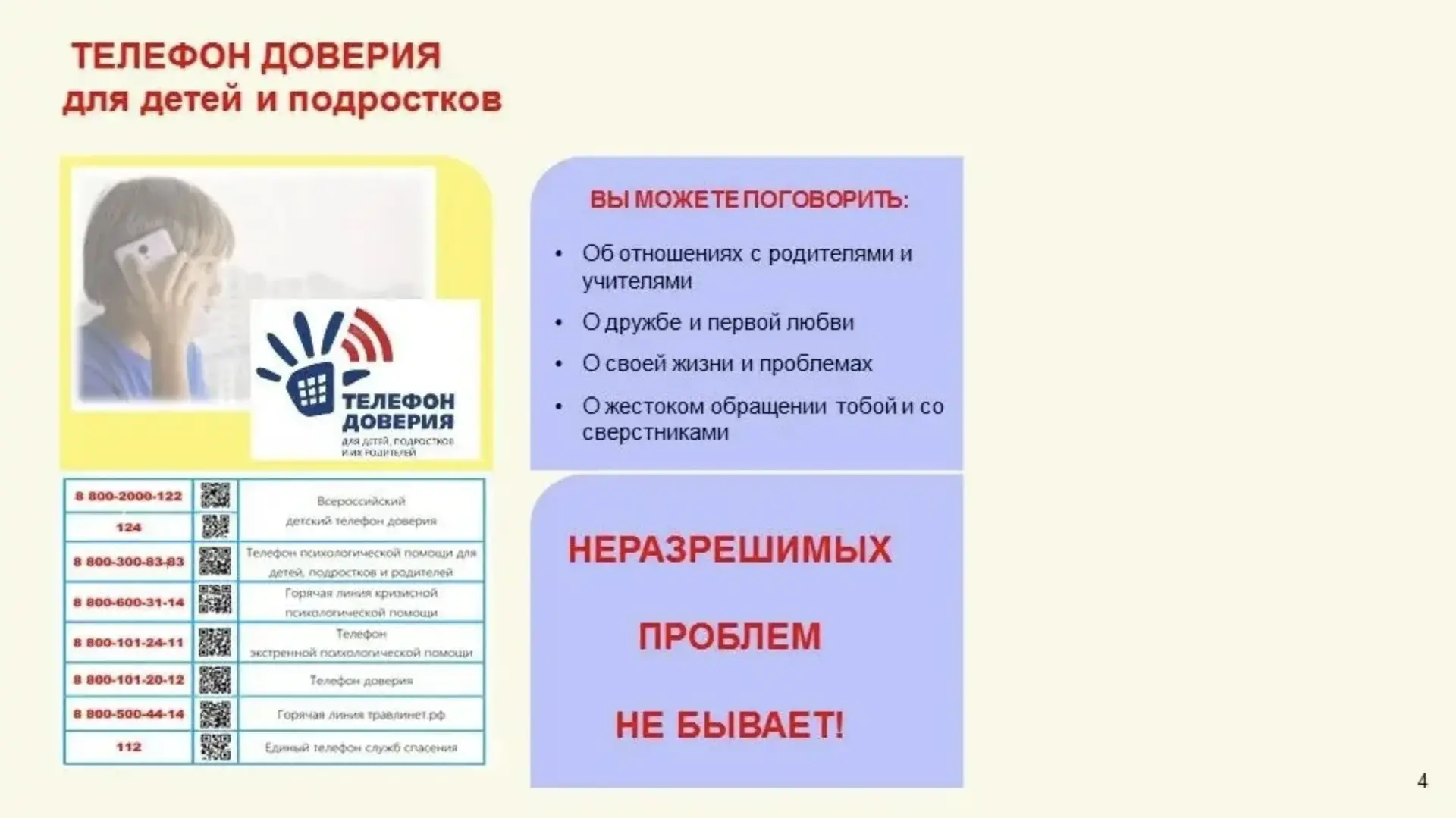 В современных условиях особенно важно обеспечить нашим детям и подросткам доступ к экстренной психологической помощи. Наличие под рукой актуальных телефонов доверия и контактов профильных служб может сыграть решающую роль в трудной ситуации.