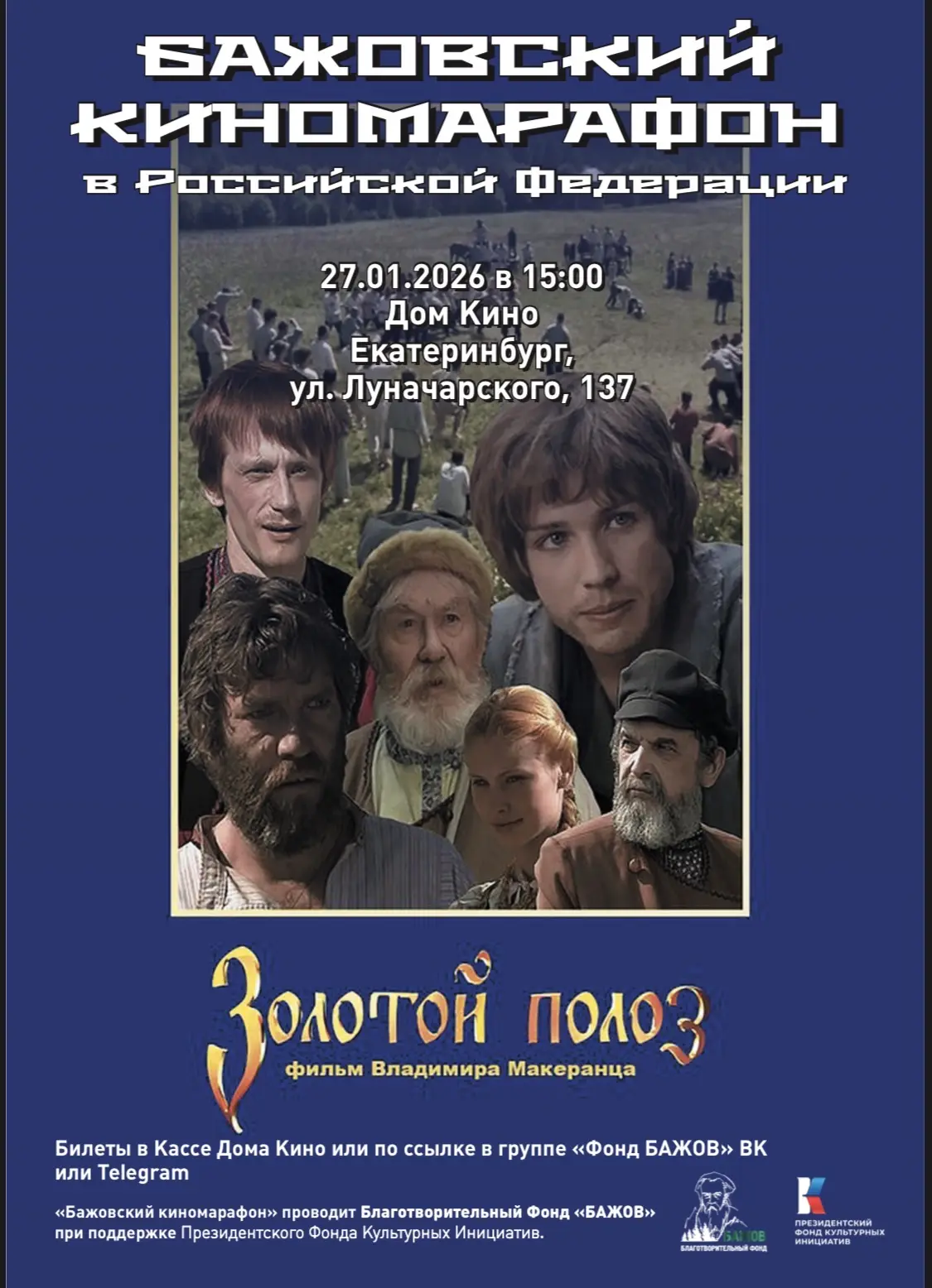 Проект «Бажовский киномарафон» реализуется при поддержке Президентского фонда культурных инициатив и Россотрудничества.