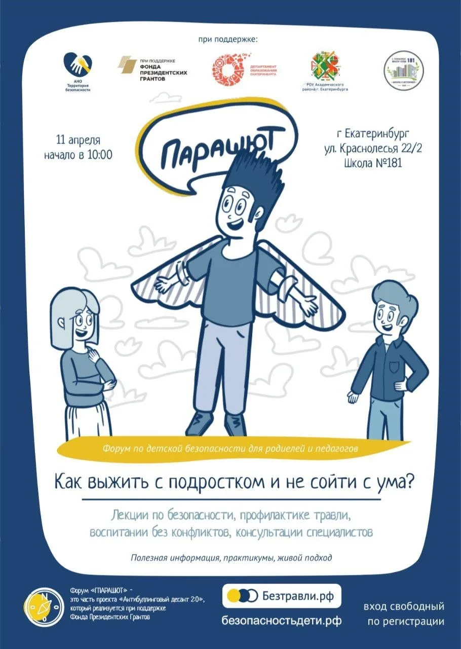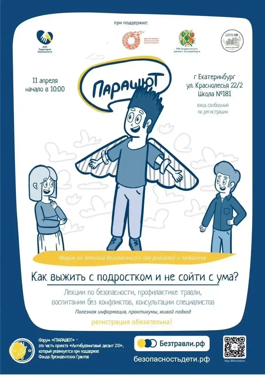 Дорогие родители школьников! Мы с командой организуем форум "Парашют" - и я прошу рассказать о нем вашим друзьям и знакомым - возможно они пропустили анонсы или вовсе не знают.