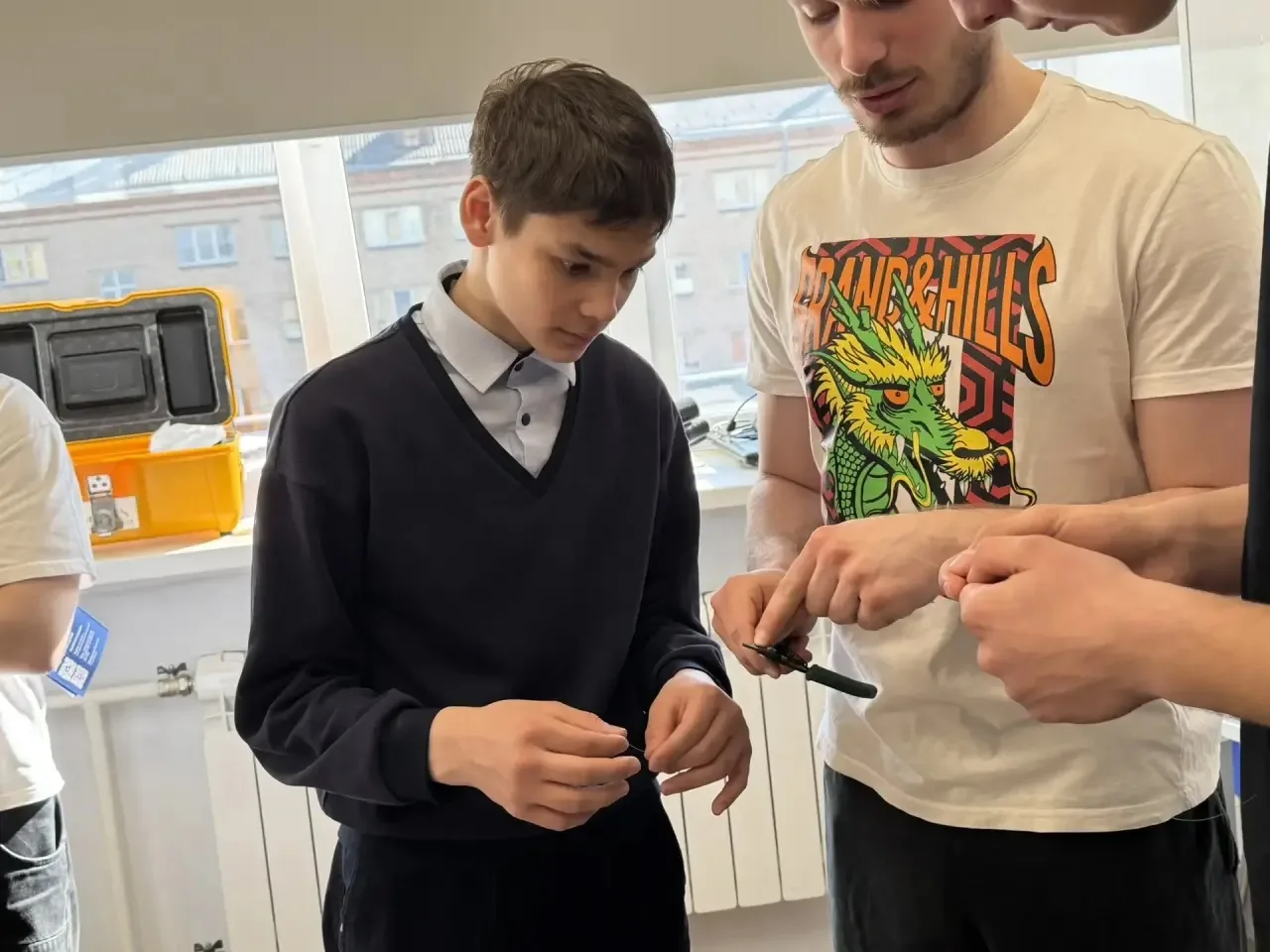 🧑✈️ Экскурсию проводили пилоты гражданской авиации. Ребята ответили на вопросы авиационной викторины, поучаствовали в мастер-классе по конструкции воздушного судна на большой радиоуправляемой модели, выполнили упражнения профотбора лётчиков.