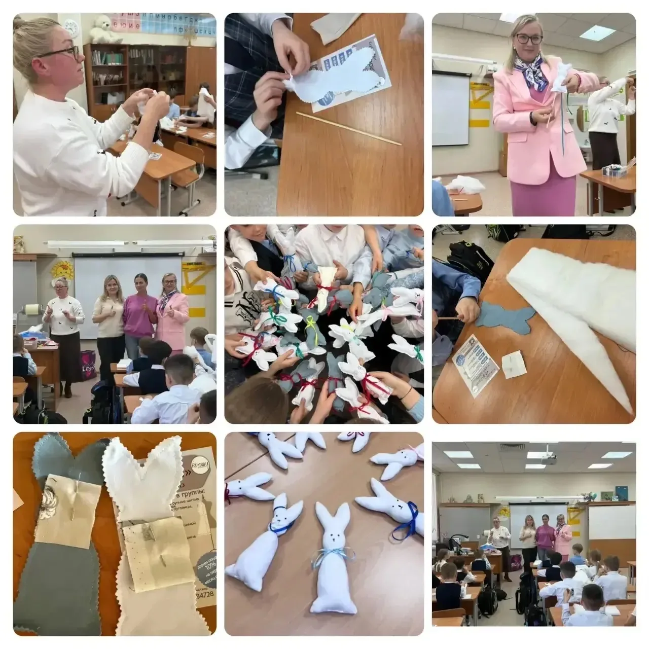 Под чутким руководством взрослых дети сшивали детали, набивали наполнителем, а самым увлекательным этапом стало декорирование. Каждый заяц получил нарядный бантик на шею, а главное — дети сами нарисовали игрушкам глаза, реснички и носики. Так безликие заготовки превратились в живых персонажей с характером.