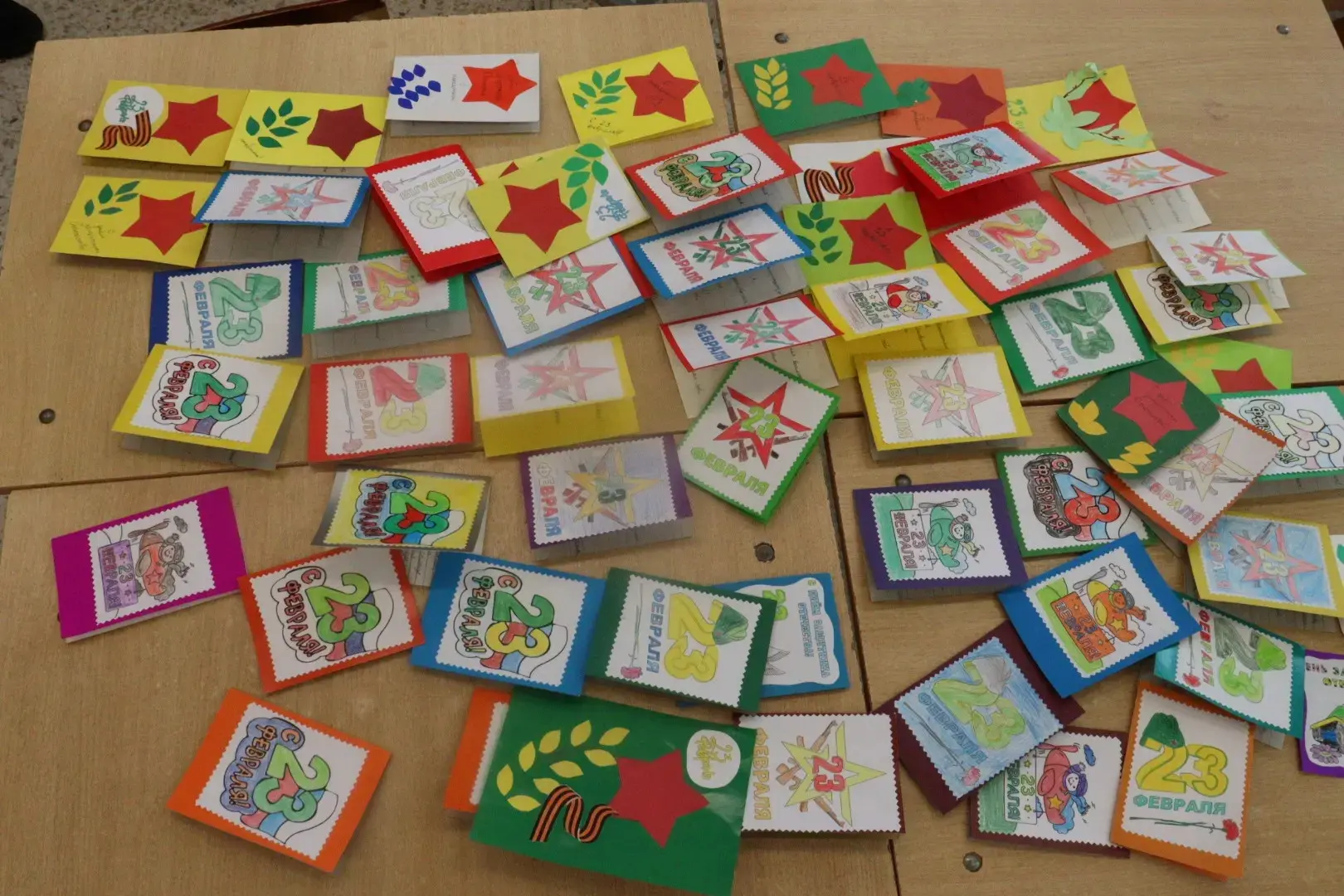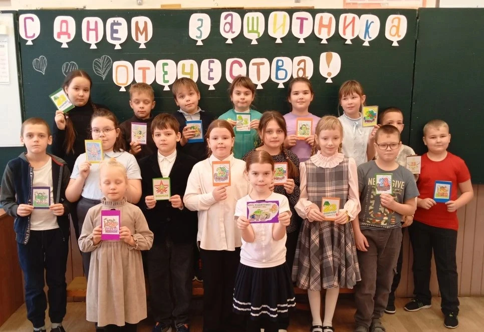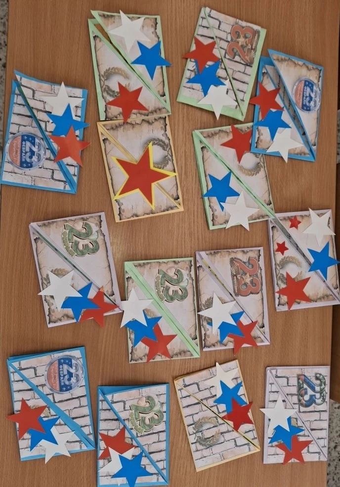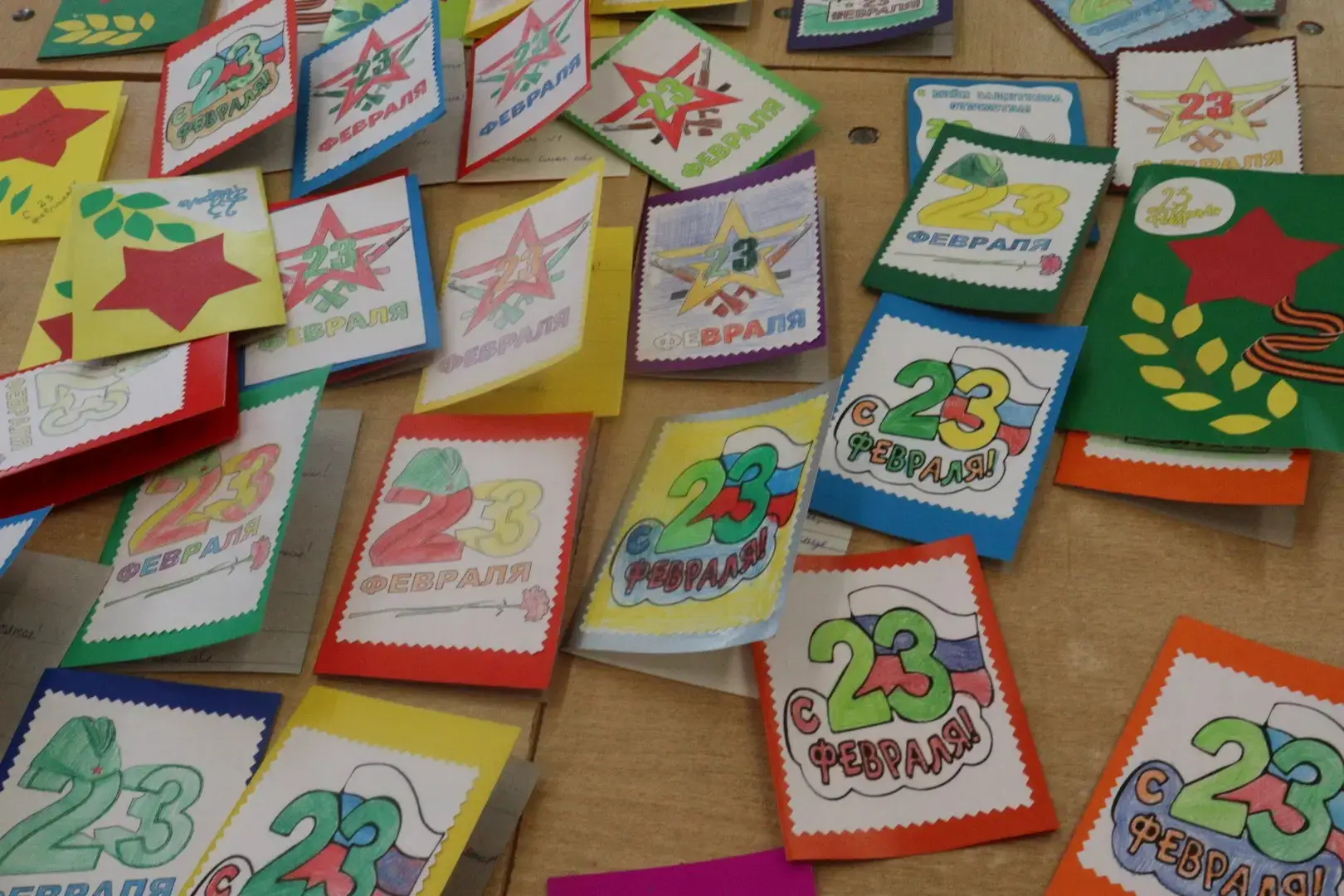 📎Ученики 2А, 3А, 3Б, 4А, 7Б, 5-х и 6-х классов сделали поздравительные открытки ко Дню защитника Отечества🇷🇺 для военнослужащих СВО.