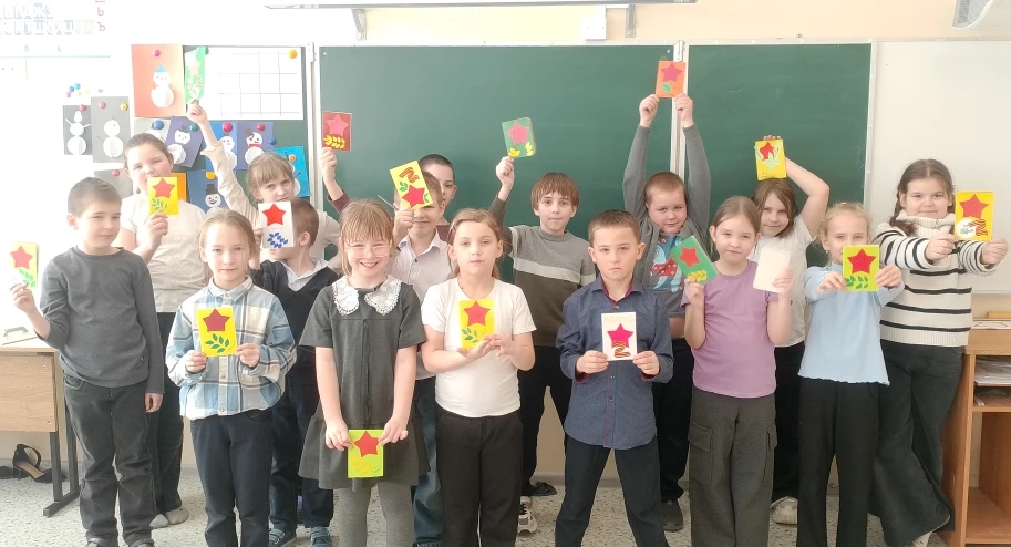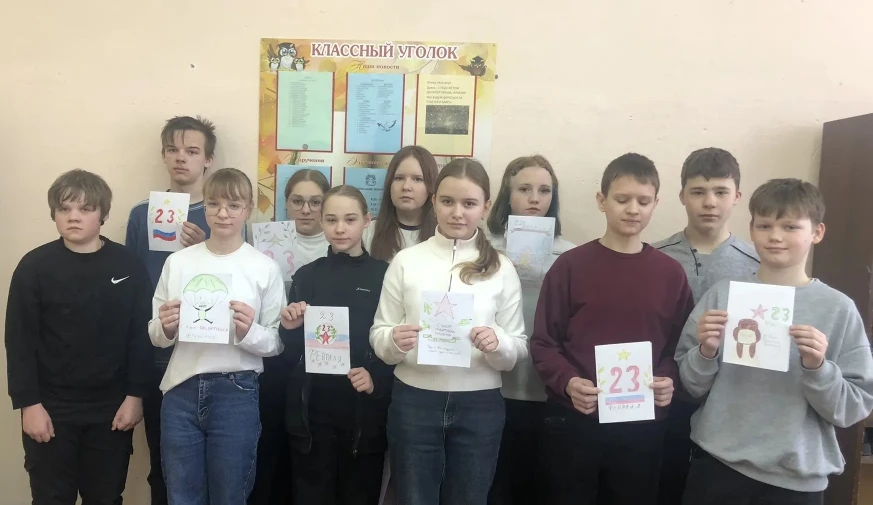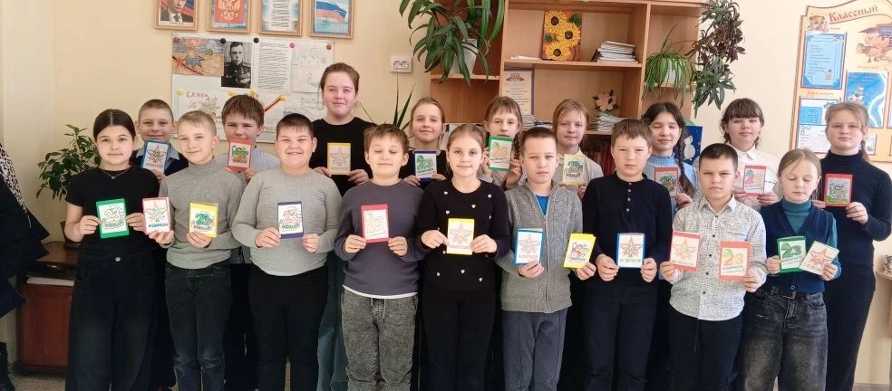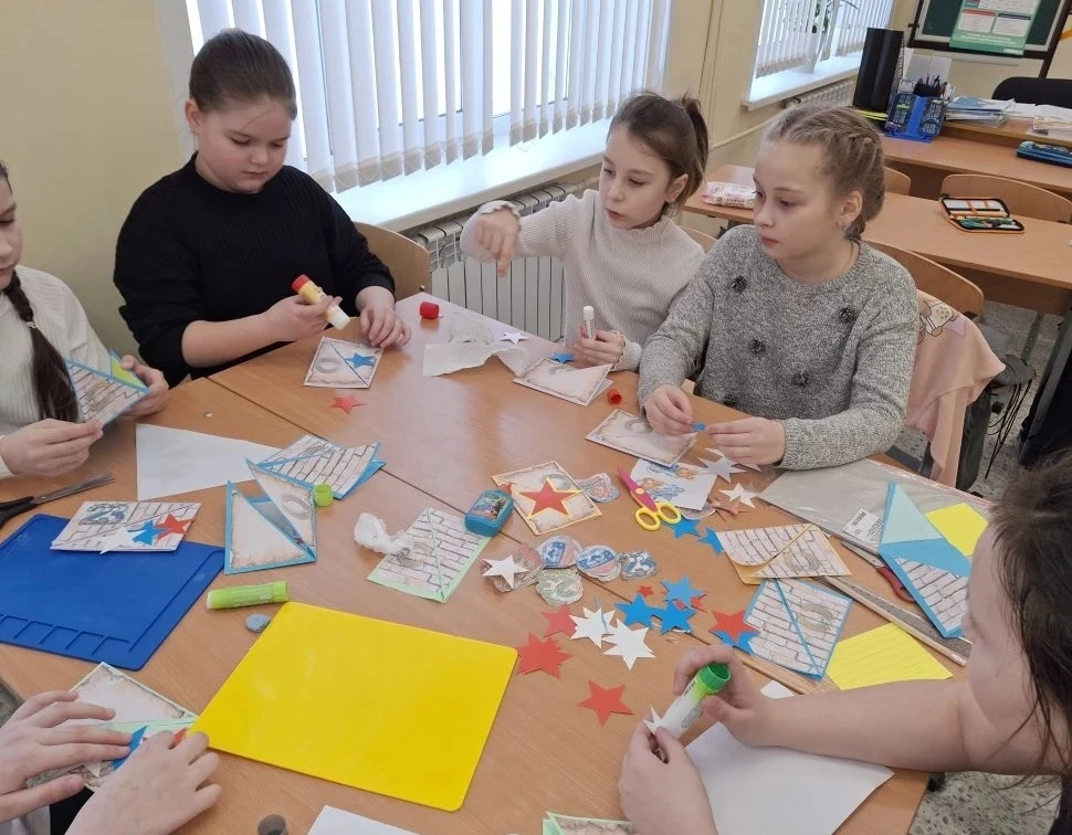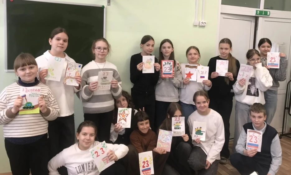 📎Ученики 2А, 3А, 3Б, 4А, 7Б, 5-х и 6-х классов сделали поздравительные открытки ко Дню защитника Отечества🇷🇺 для военнослужащих СВО.
