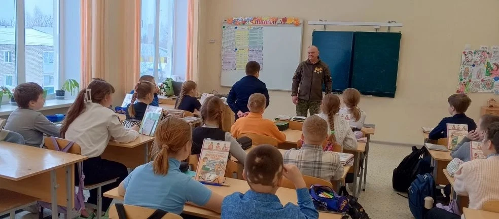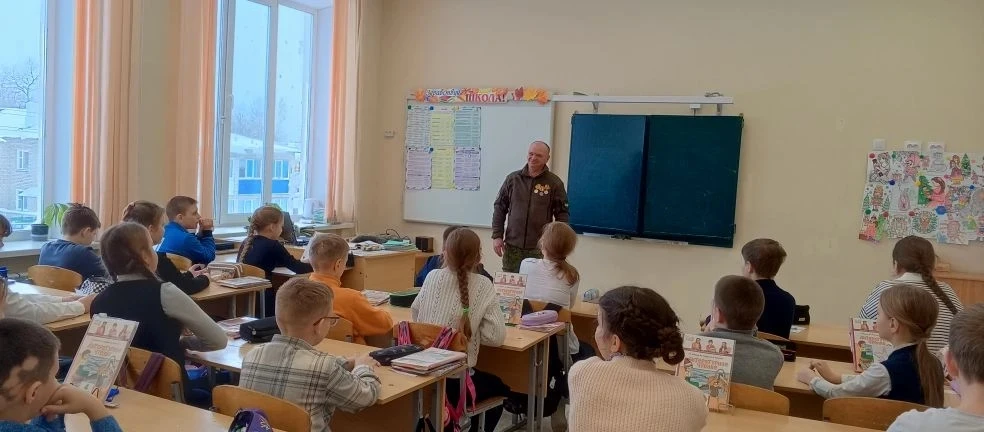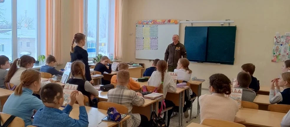 в 4А класс пришёл не просто гость, а папа одной из учениц класса - Забавкин А.А., участник специальной военной операции.