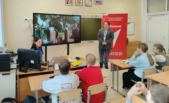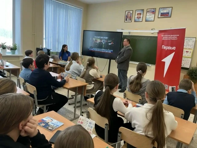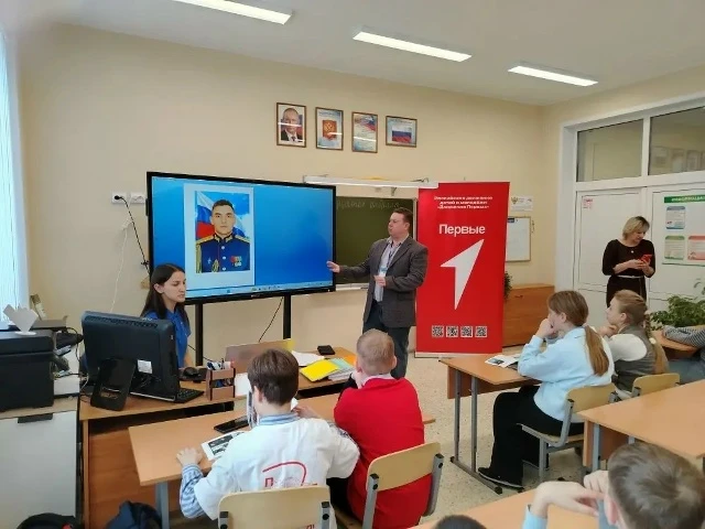 🇷🇺В преддверии Дня Защитника Отечества местное отделение Движения Первых совместно с фондом «Защитники Отечества» провели с обучающимися 4Б, 5-х и 6-х классов интерактивное занятие и подарили ребятам сборники от Общества "Знание" - Герои на защите Отечества.