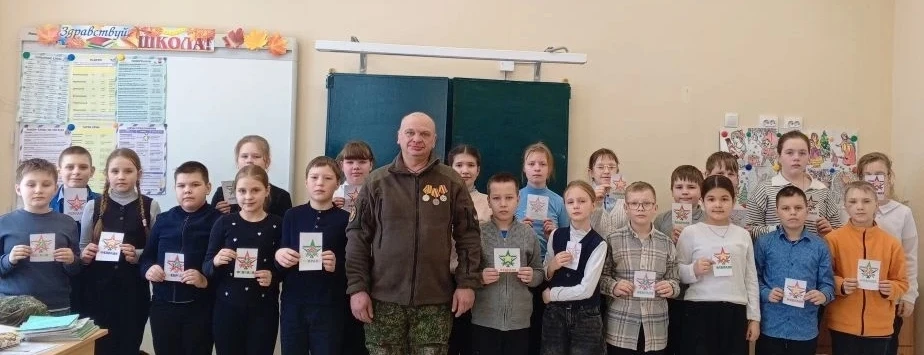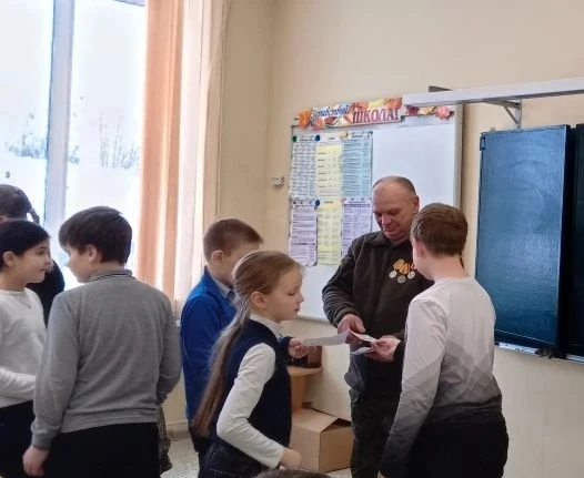Ребята поздравили участника СВО и подарили подарки, сделанные своими руками.