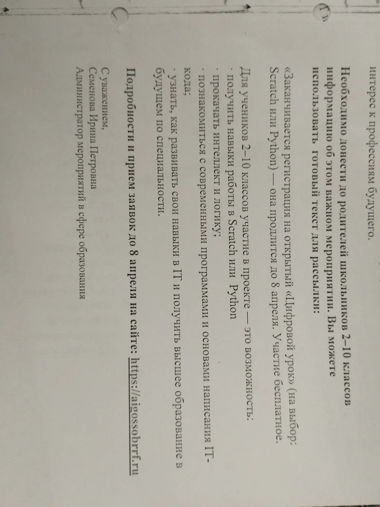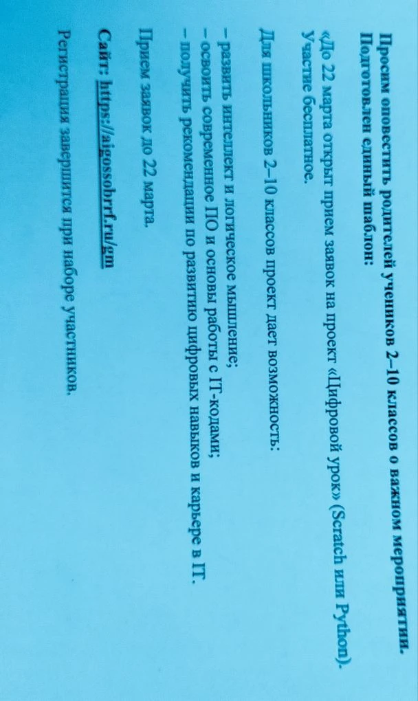 Главные новости школы, объявления для обучающихся, родителей и педагогов.