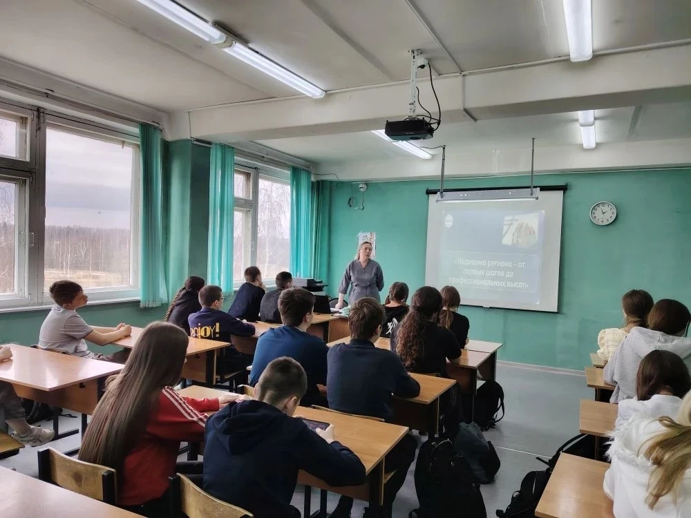 26.03.2026г. прошло профориентационое занятие на тему: «Медицина региона — от первых шагов до профессиональных высот». Занятие было посвящено развитию здравоохранения в Смоленской области и призвано помочь обучающимся сделать осознанный выбор будущей профессии, познакомив их с реалиями и перспективами медицинской отрасли в родном регионе. В ходе занятия школьники школьники узнали о современном состоянии сферы здравоохранения. В формате открытого диалога ребята обсудили, какой путь предстоит пройти будущему врачу или медсестре. Такие уроки помогают ребятам не просто выбрать профессию, но и понять, насколько важна преемственность поколений в медицине. Приятно осознавать, что в нашем регионе есть все возможности для того, чтобы получить качественное образование: и школа, и колледж, и вуз работают как единая команда.
