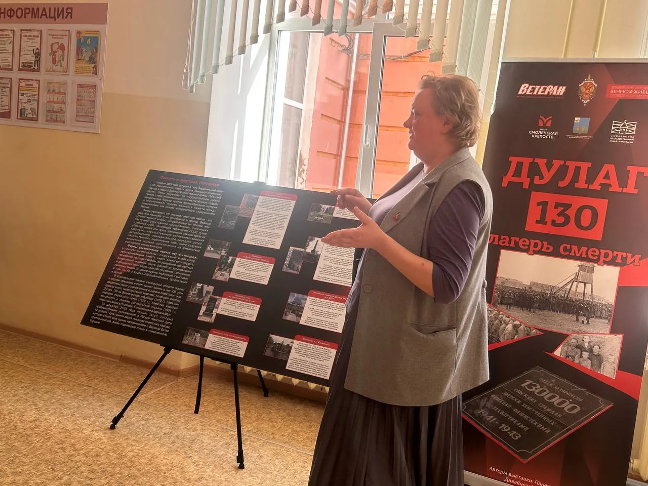 👆Среди участников телемоста и ребята нашей школы с советником директора по воспитанию Тюриной С.Н.. Она поделилась с участниками встречи проектом "Непокоренные. Дорогою страданий". Этот проект представляет собой экскурсионный маршрут по местам памяти жертв геноцида мирных граждан и военнопленных в период оккупации Рославля во время Великой Отечественной войны.