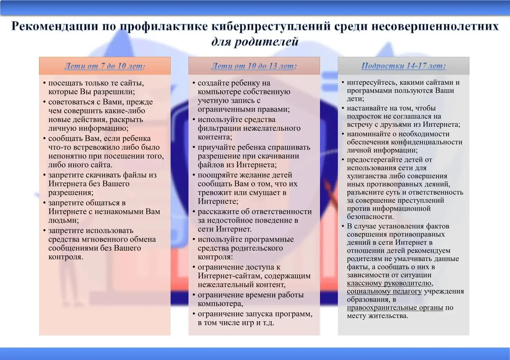 Дети должны знать об элементарных правилах безопасности поведения в Интернете, соблюдение которых позволит значительно снизить риск совершения преступления либо и вовсе защитит от посягательства:
