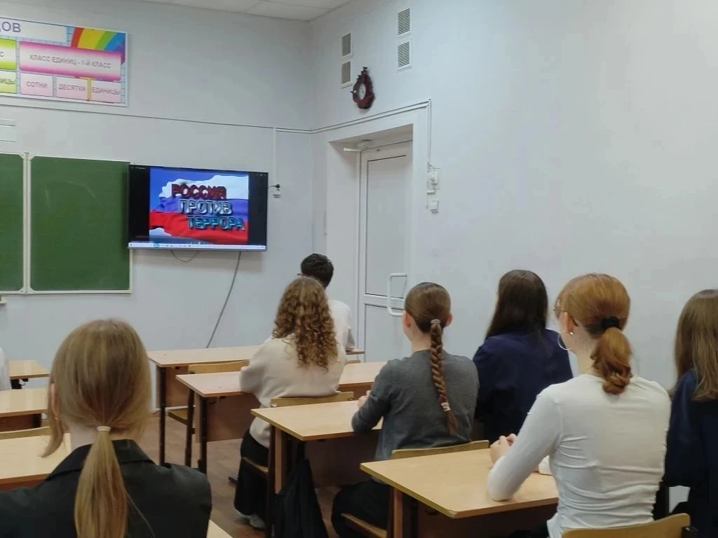 🎥 В ходе занятия ученики посмотрели серию видеороликов: социальную рекламу «Россия против террора», в котором наглядно показали единство общества в борьбе с угрозой терроризма и важность гражданской бдительности, а также документальную хронику о том, как меняется жизнь города после теракта. Кадры произвели сильное впечатление и помогли осознать реальные последствия террористических актов для мирных жителей, инфраструктуры и атмосферы в обществе.