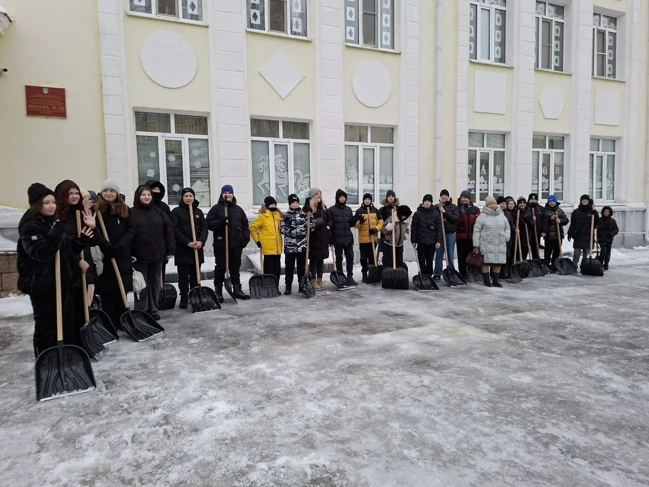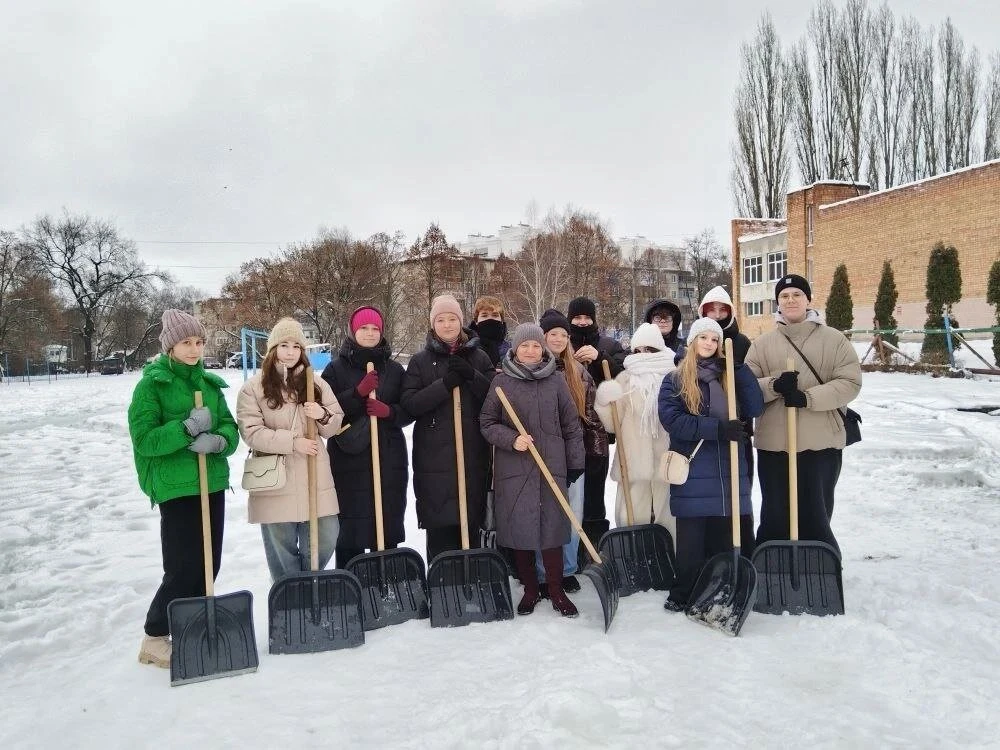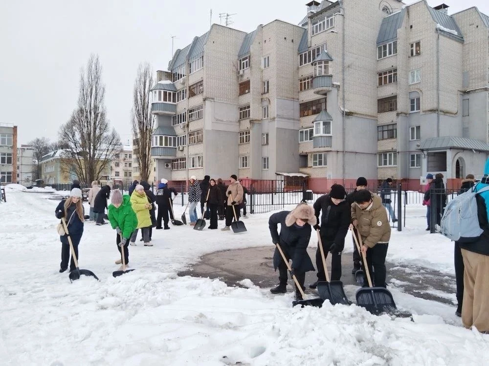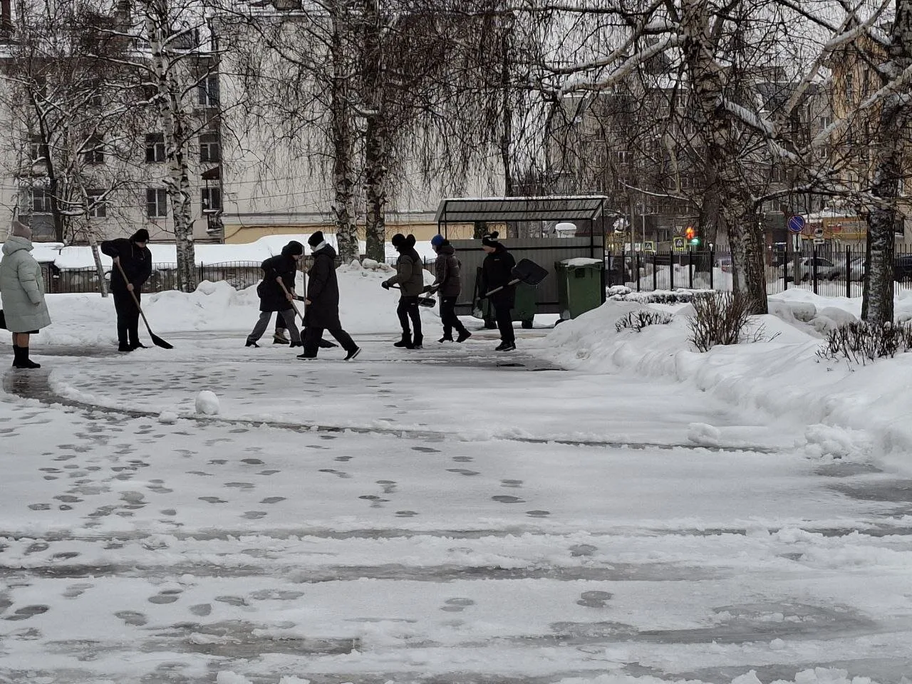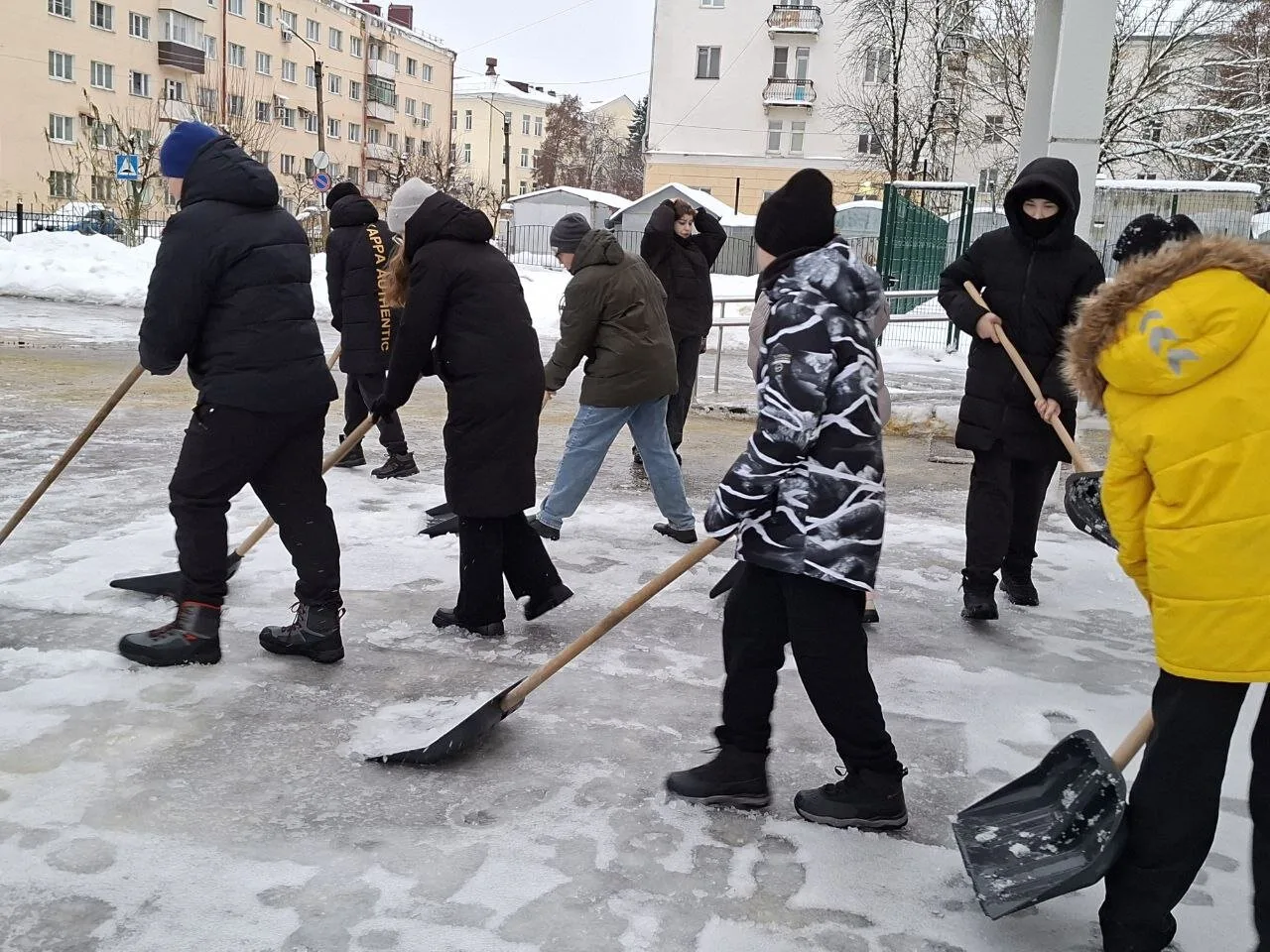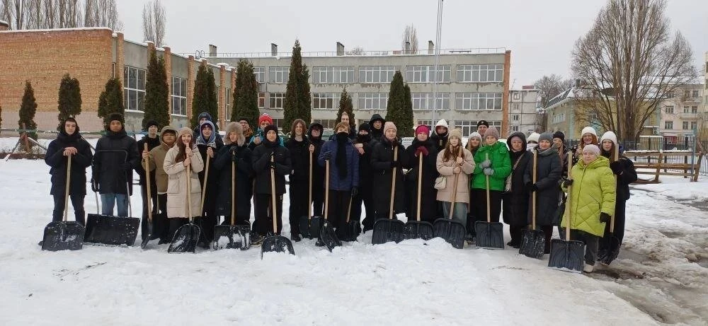 9 января дружно вышли на уборку ученики 8Е, 9Б, 9Д и всех 10х классов. Вместе очистили от снега и льда пешеходные дорожки. Поработали на территории школы и прилегающих участков, в том числе на территории корпуса, где продолжается капитальный ремонт и учебный процесс не проводится, но при этом жители близлежащих домов ежедневно там ходят.