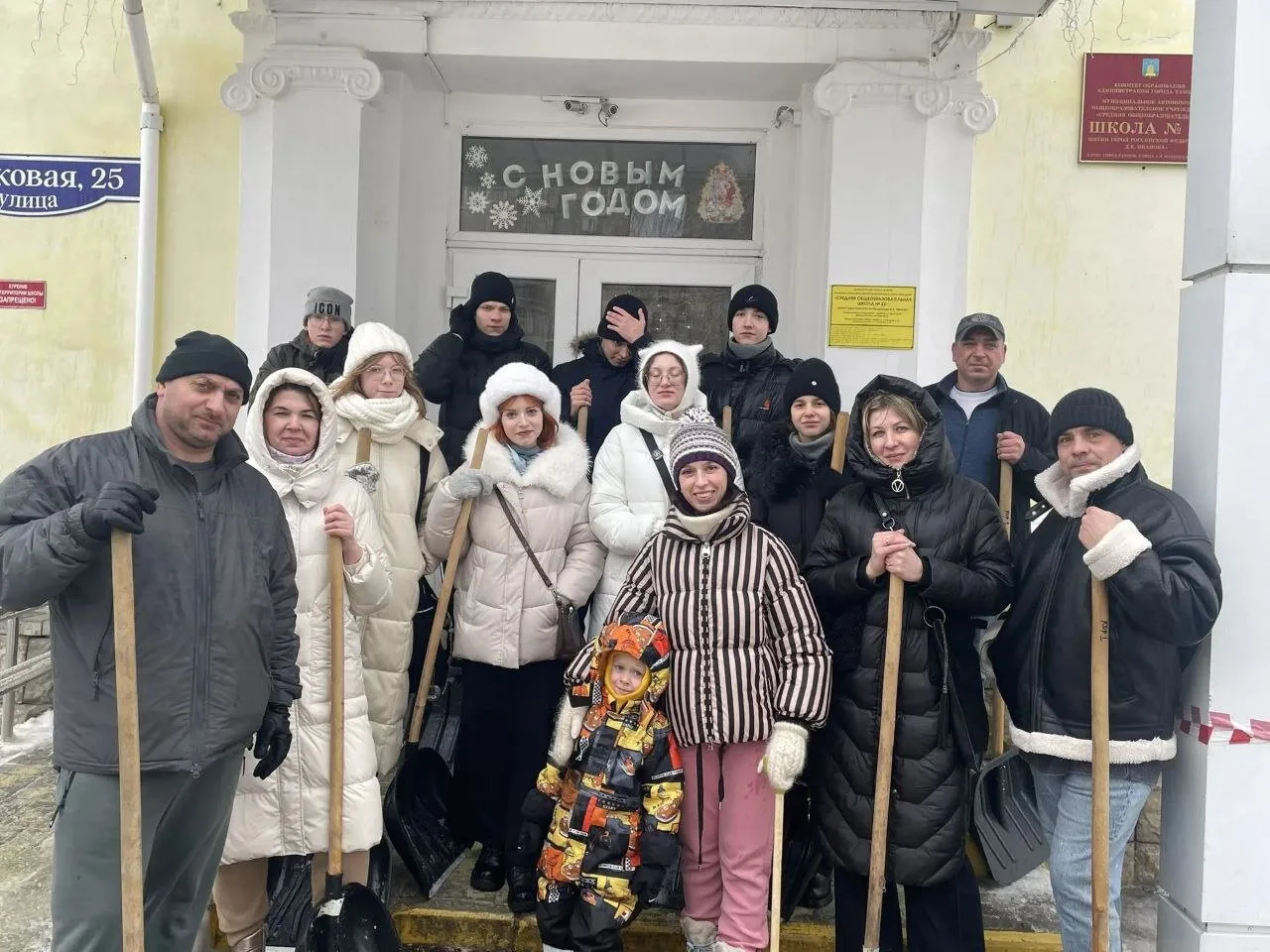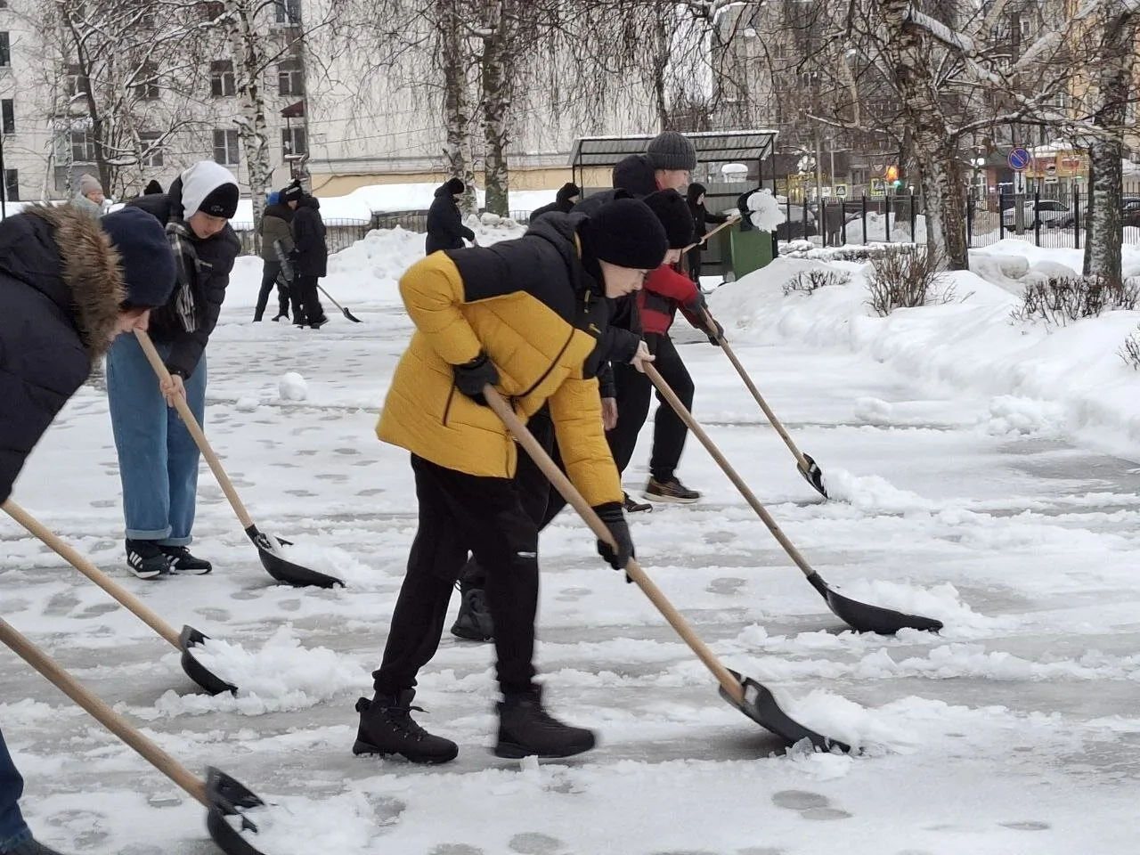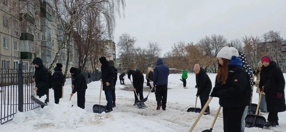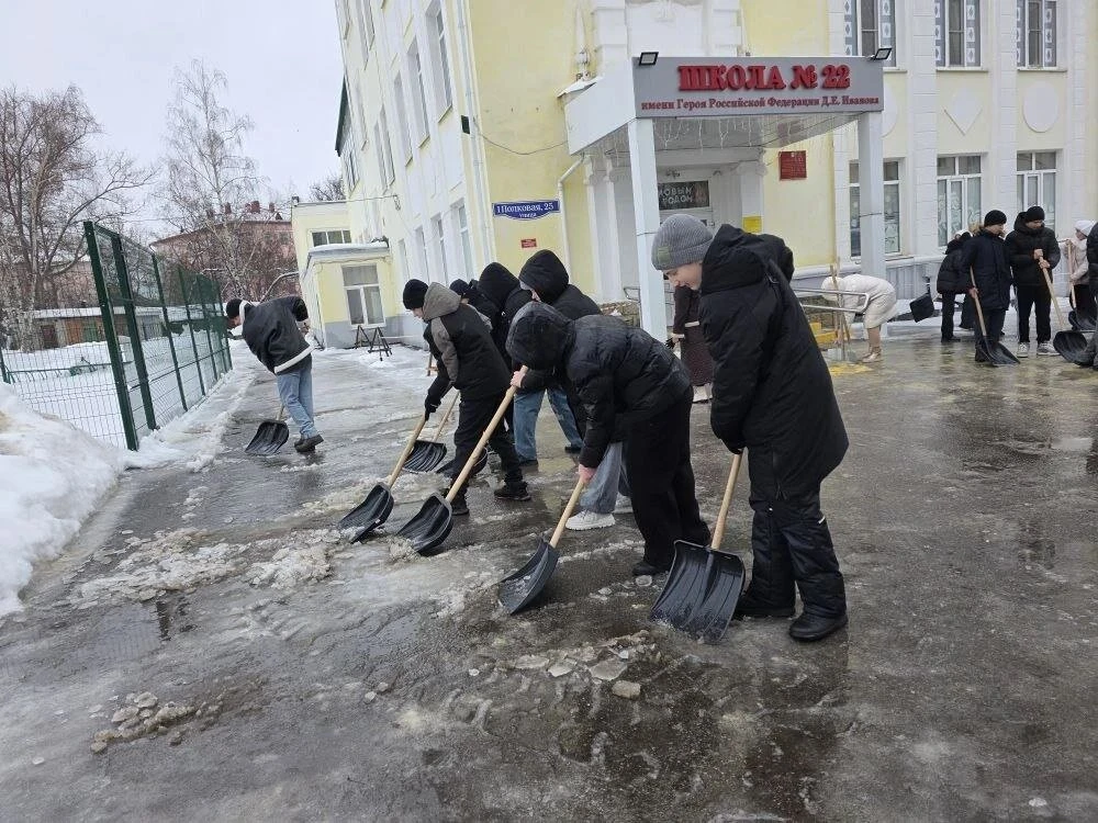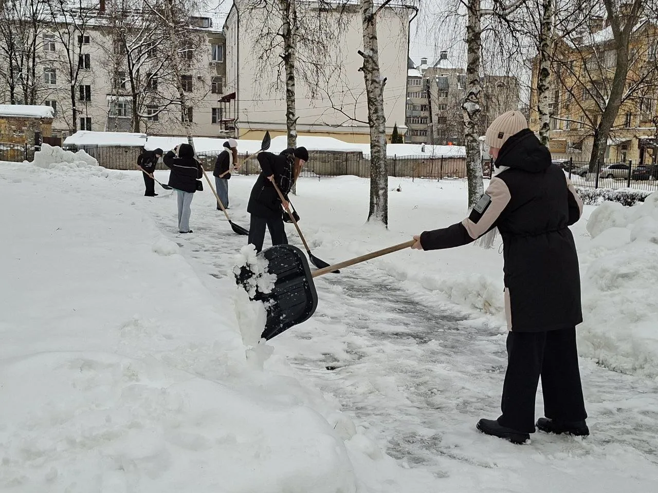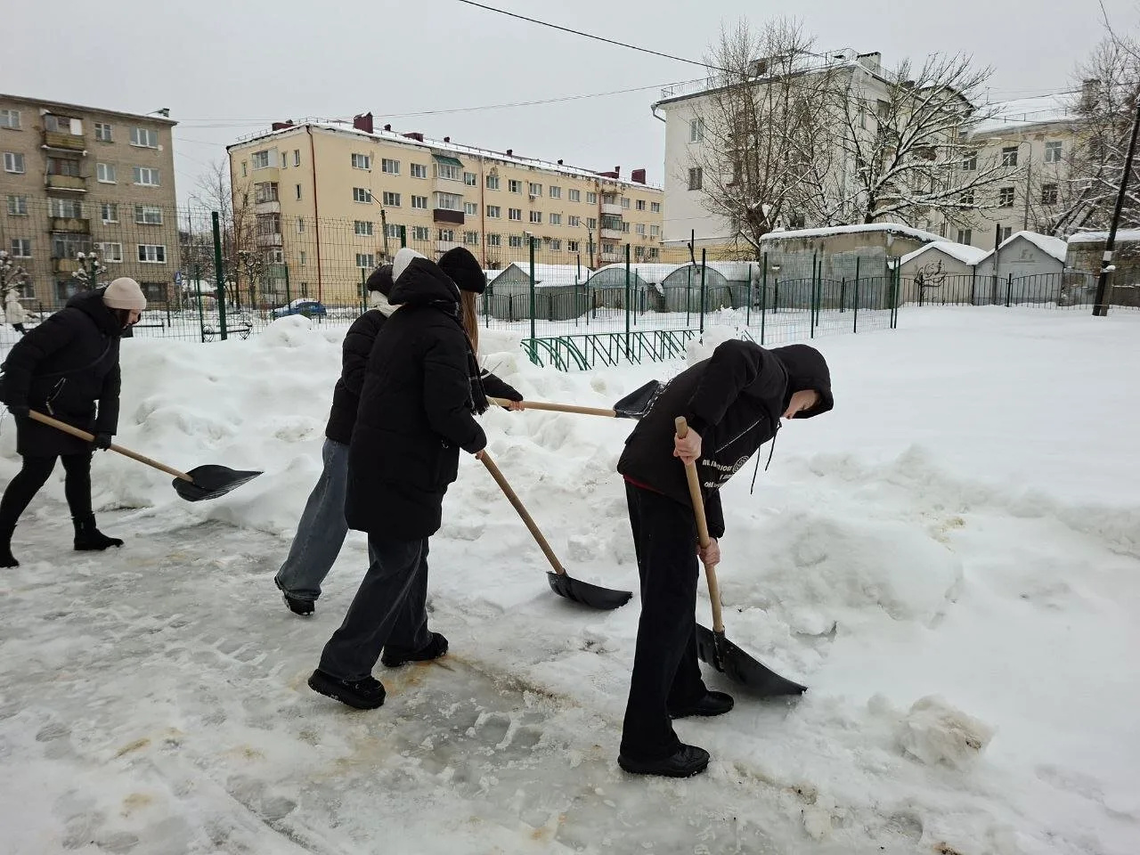 9 января дружно вышли на уборку ученики 8Е, 9Б, 9Д и всех 10х классов. Вместе очистили от снега и льда пешеходные дорожки. Поработали на территории школы и прилегающих участков, в том числе на территории корпуса, где продолжается капитальный ремонт и учебный процесс не проводится, но при этом жители близлежащих домов ежедневно там ходят.