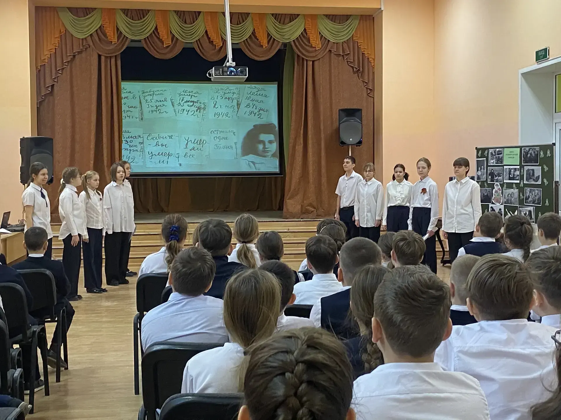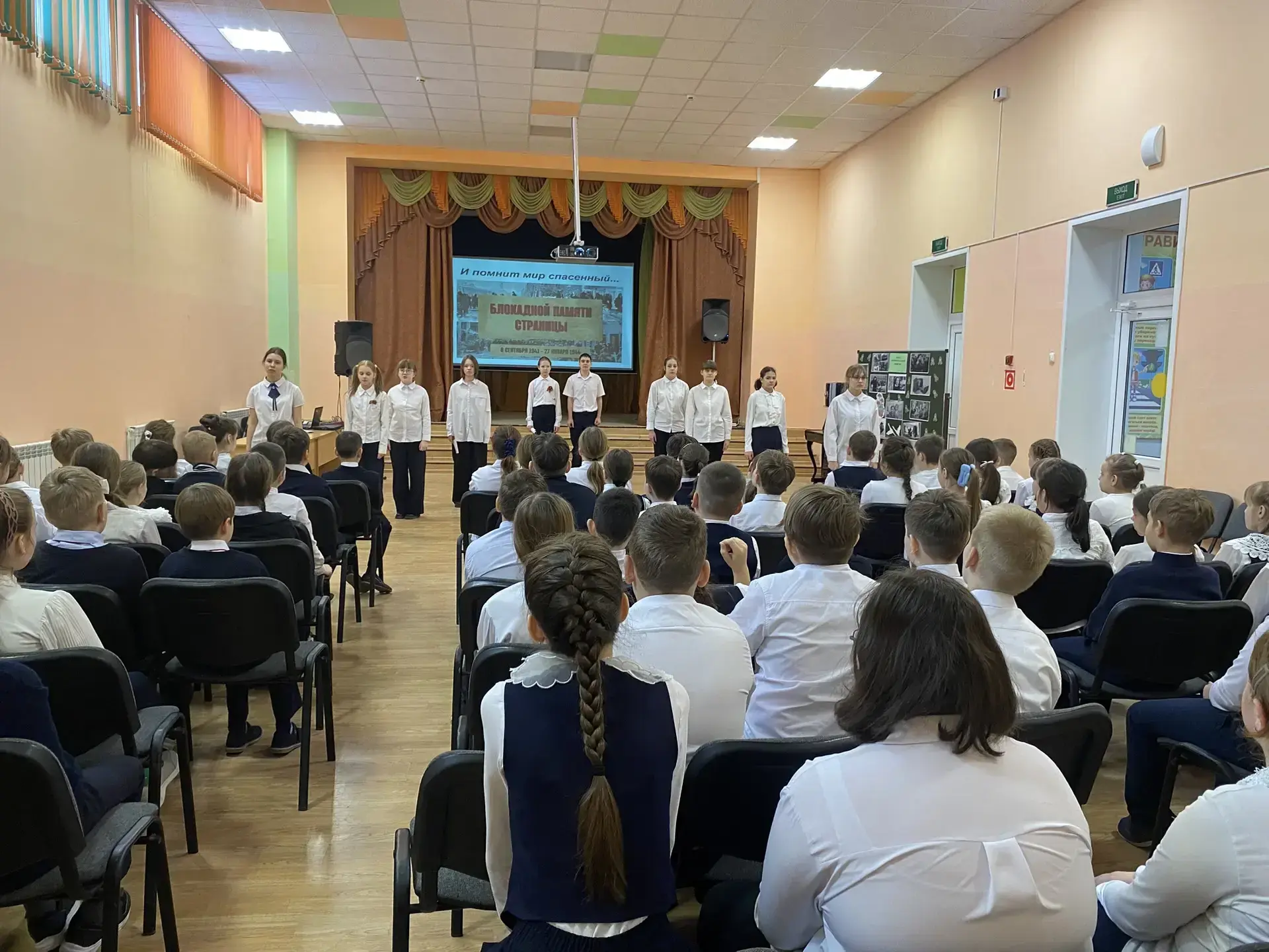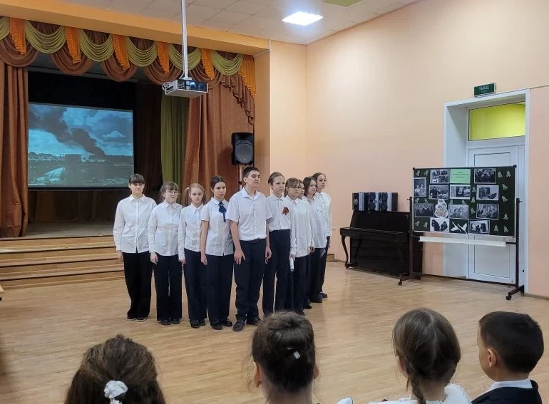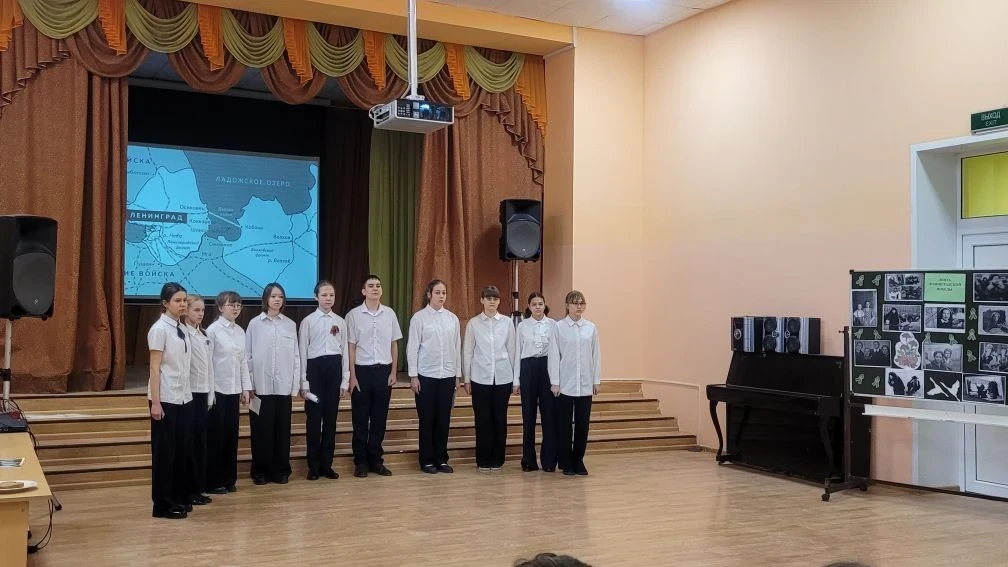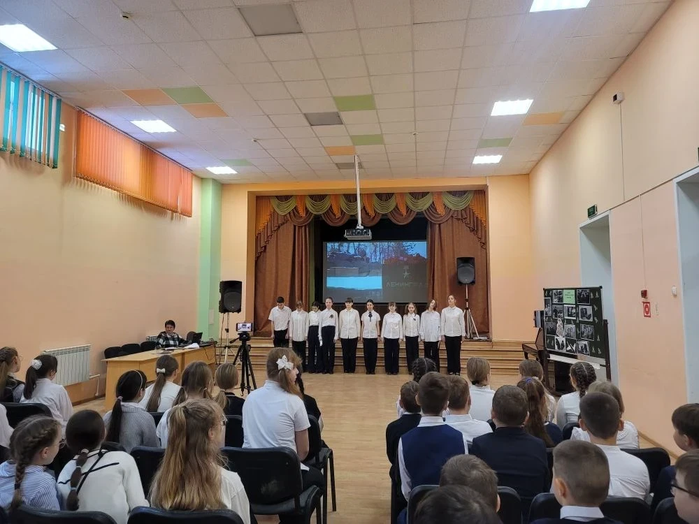 С первых минут дух патриотизма охватил зрителей и унёс в те далёкие 40-е годы. Обучающимся 4-х и 5-х классов рассказали о тяжелых испытаниях, выпавших на долю жителей осажденного закрытого города Ленинграда: о голоде и холоде, о детях и женщинах, работавших наравне с мужчинами на заводах, о дороге жизни, о защите и обороне Ленинграда советскими солдатами. Особенными чувствами ребята прониклись к судьбе маленькой девочки Тани Савичевой. Её дневник стал одним из символов Великой Отечественной войны, прослушали отрывки из 7-й симфонии известного композитора Дмитрия Шостаковича. Почтили память ленинградцев, погибших во время блокады минутой молчания.