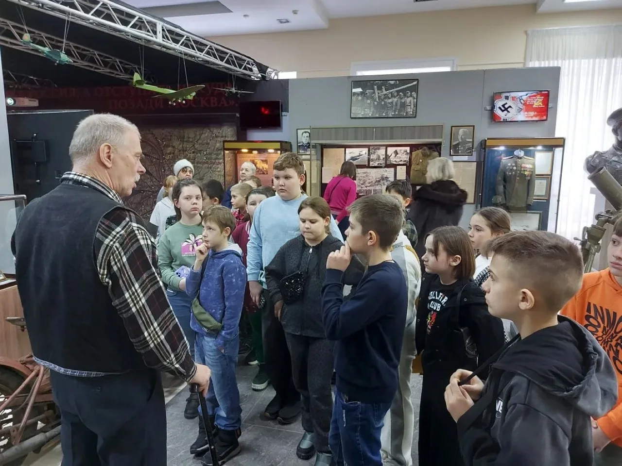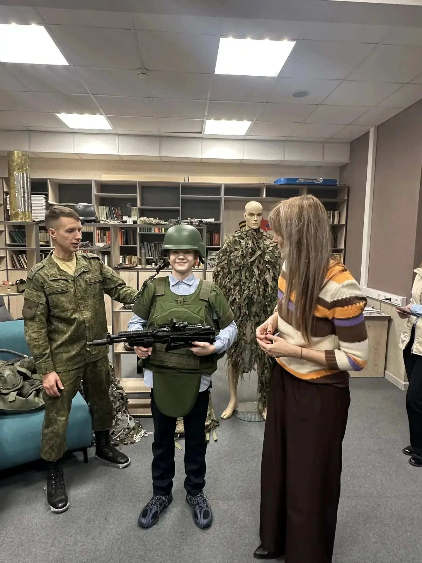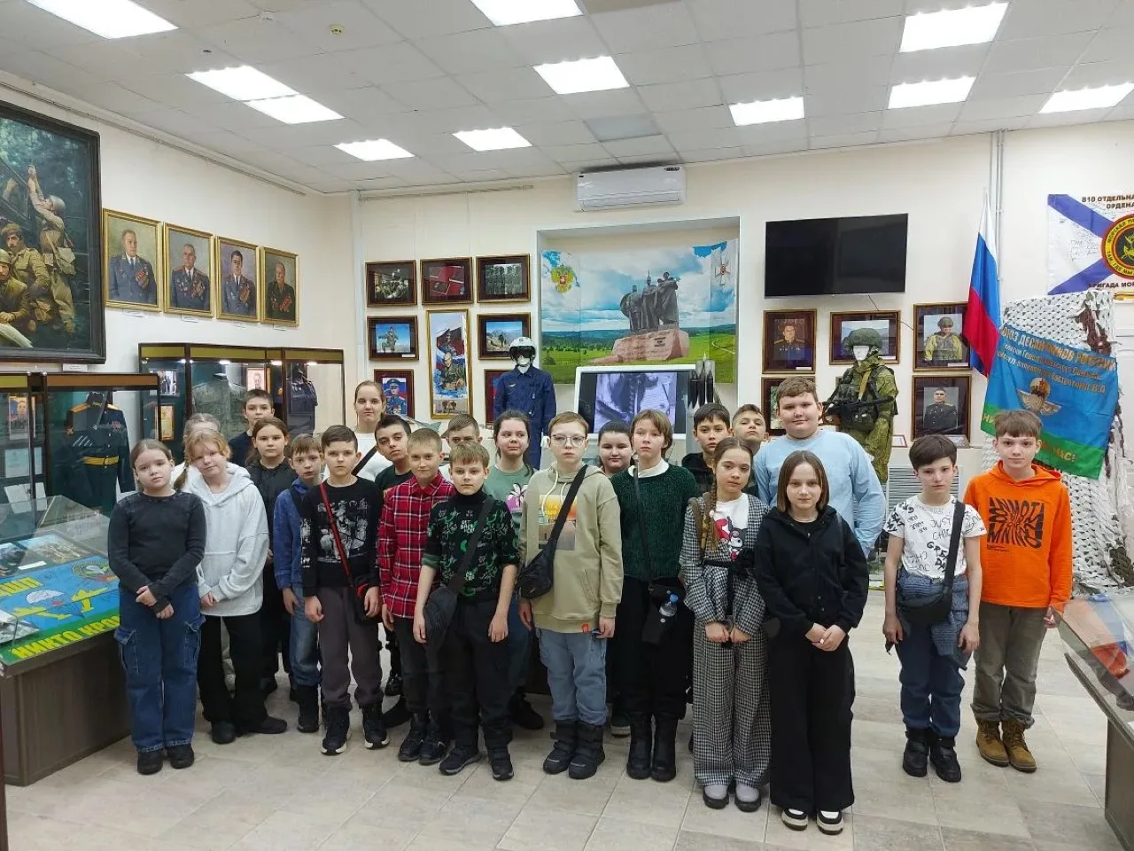 Ребятам рассказали о фонде в целом, о том, какие вопросы могут решиться в его стенах. В ходе экскурсии сообщили о том, какая помощь оказывается ветеранам и их семьям: продемонстрировали одежду, предметы мебели, которые могут упростить жизнь инвалидов. Показали и дали примерить и подержать снаряжение, боеприпасы и другие предметы, используемые в ходе СВО, привезенные с фронта.