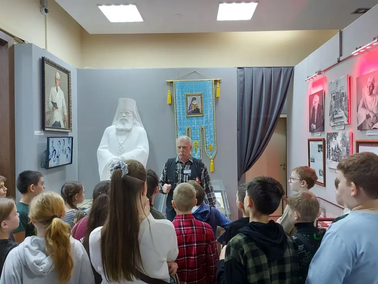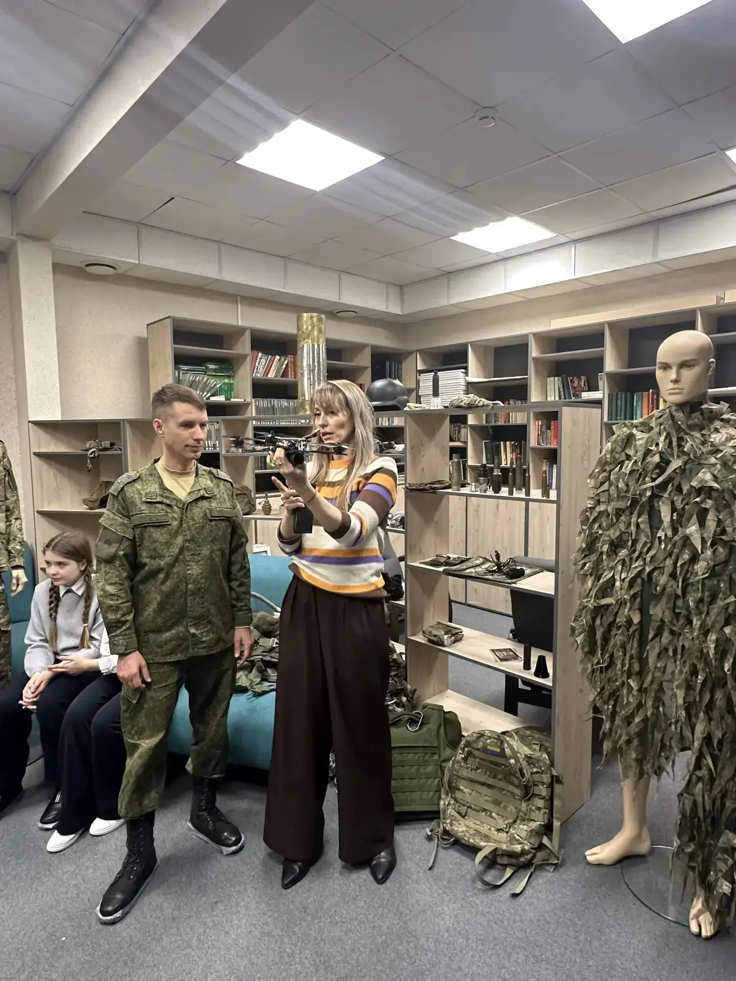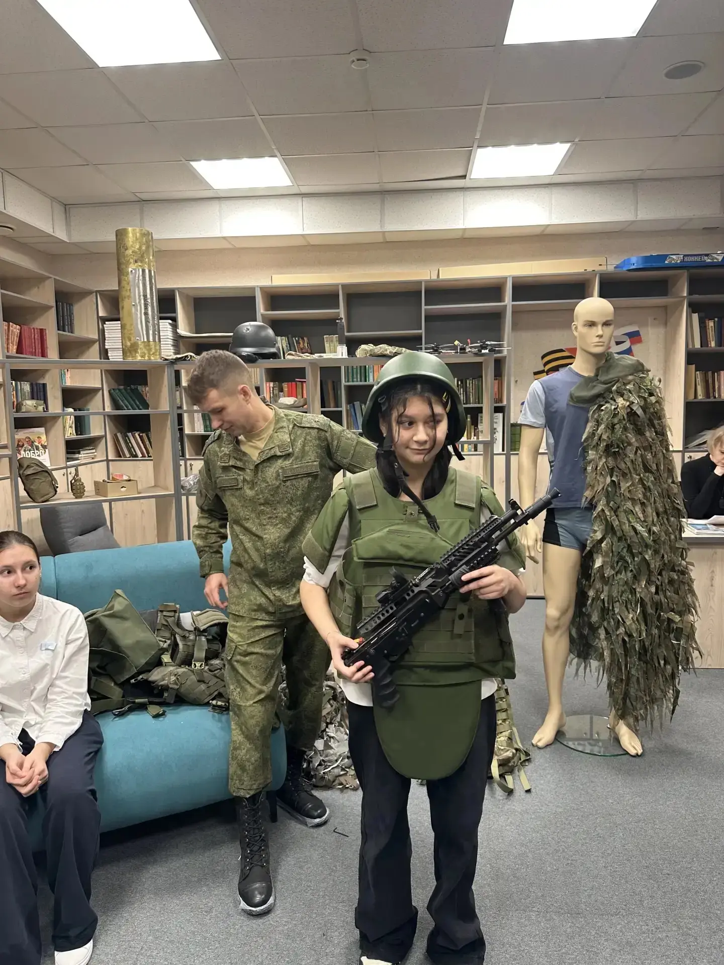 Ребятам рассказали о фонде в целом, о том, какие вопросы могут решиться в его стенах. В ходе экскурсии сообщили о том, какая помощь оказывается ветеранам и их семьям: продемонстрировали одежду, предметы мебели, которые могут упростить жизнь инвалидов. Показали и дали примерить и подержать снаряжение, боеприпасы и другие предметы, используемые в ходе СВО, привезенные с фронта.